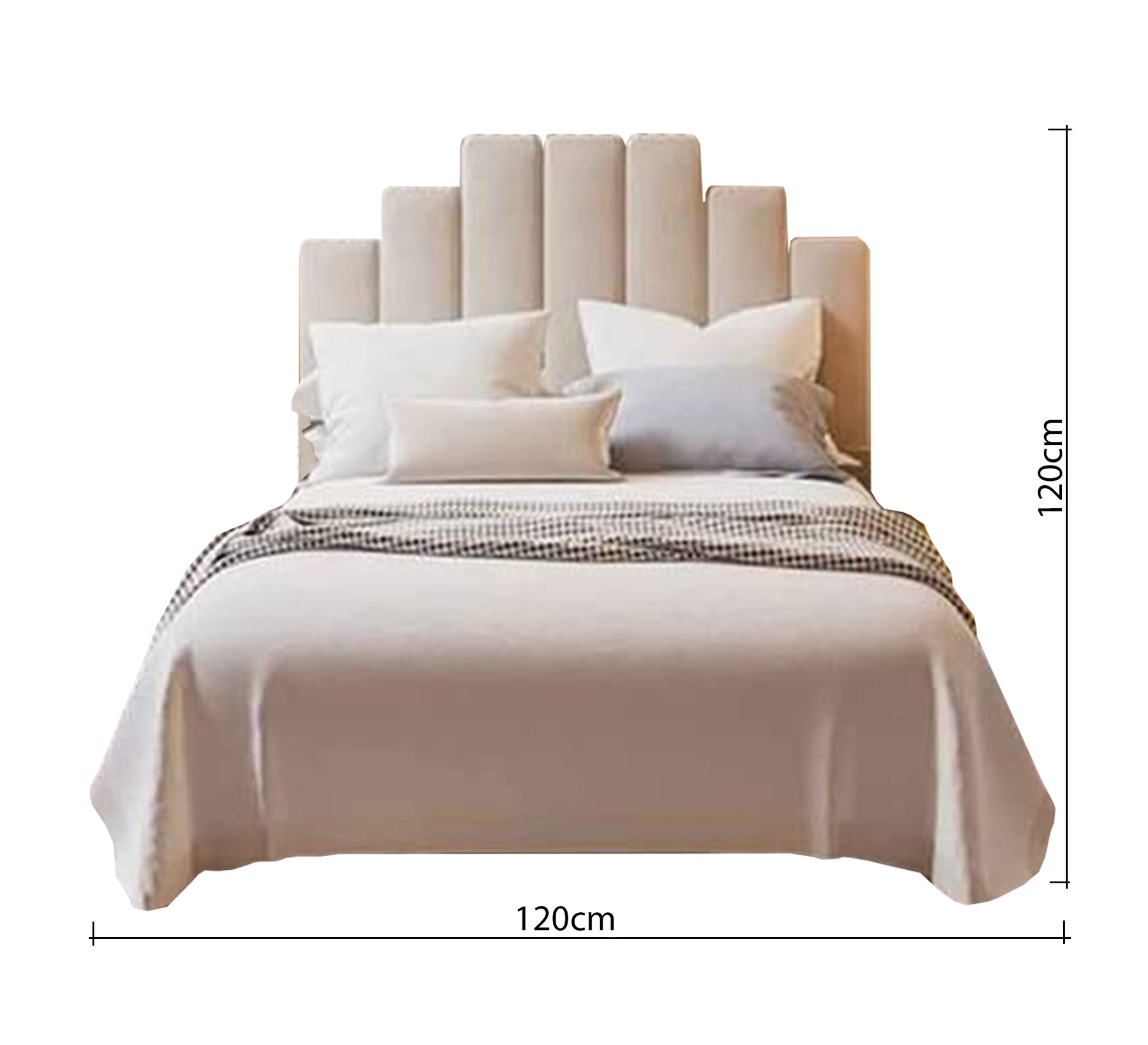 - السرير بطول 195 سم وارتفاع مسند الظهر 120 سم وبعروض مختلفة 100 و120 و140 و160 و180 سم.
