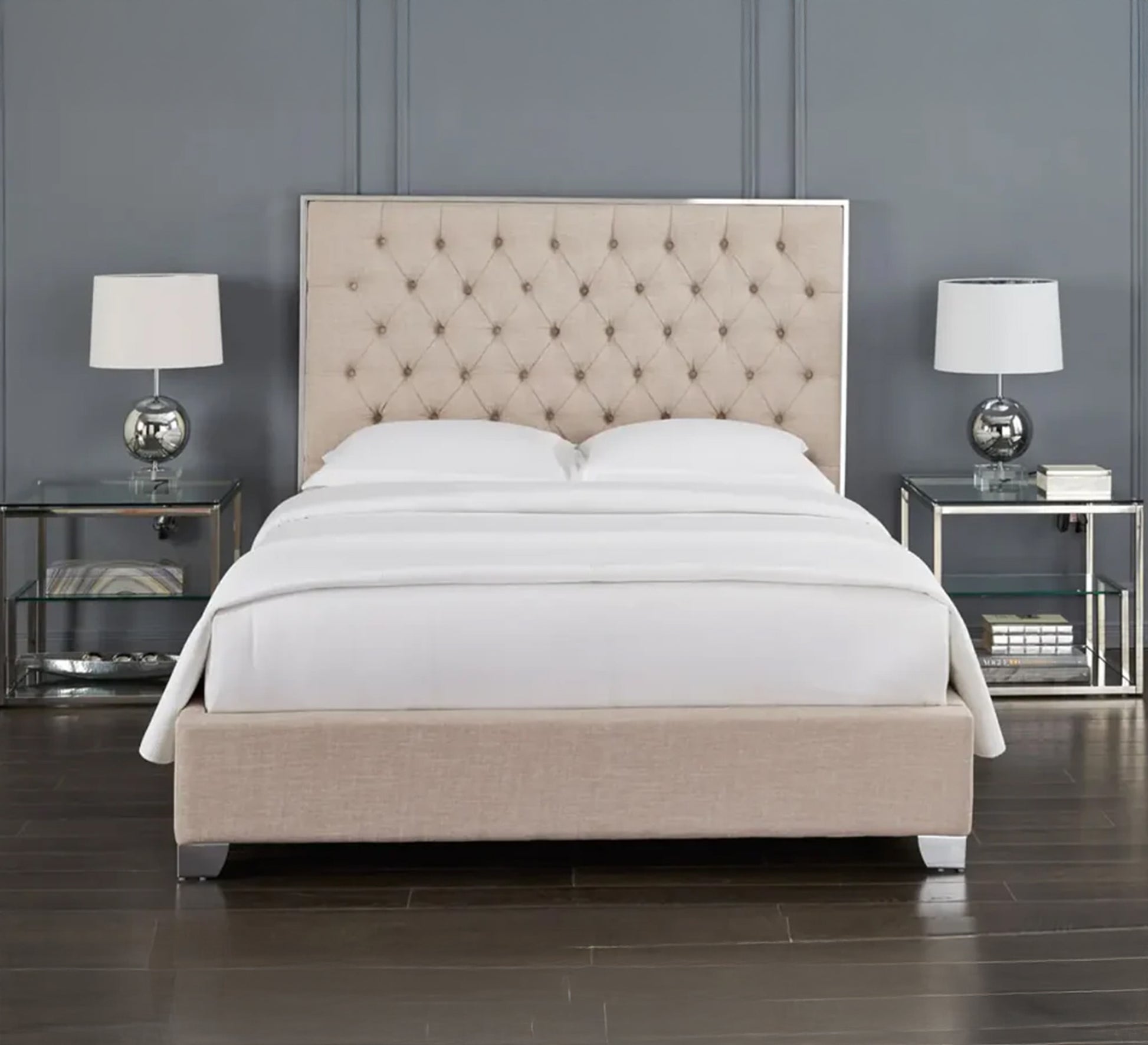 سرير بيج بتنجيد كابتونيه ولمسة كلاسيكية فاخرة