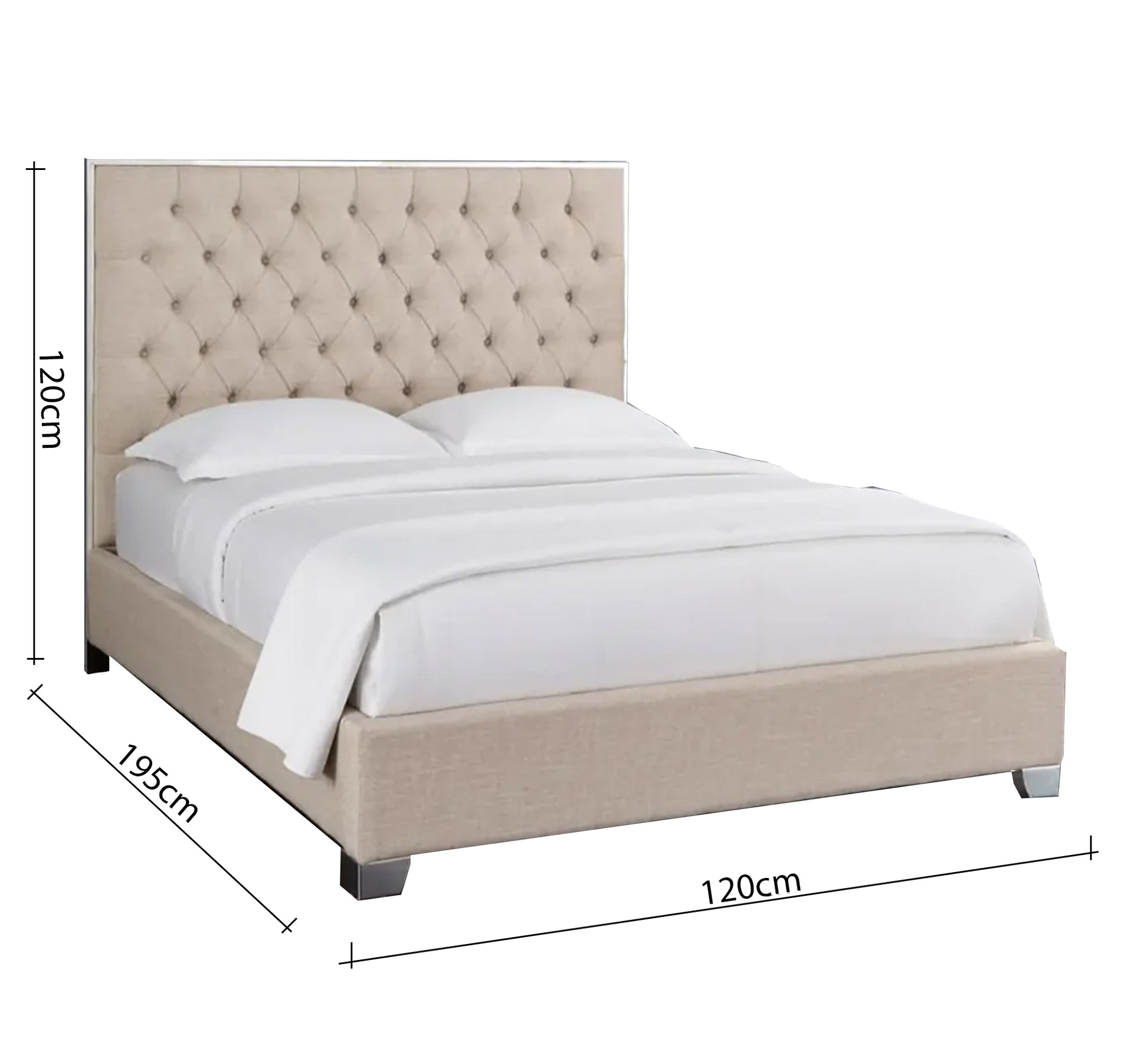- السرير بطول 195 سم وارتفاع مسند الظهر 120 سم وبعروض مختلفة 100 و120 و140 و160 و180 سم.