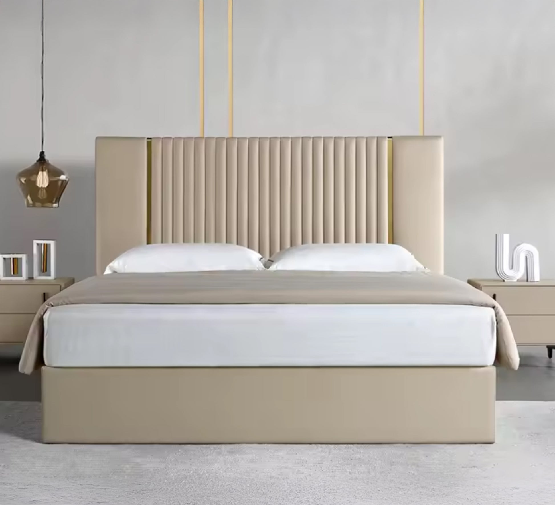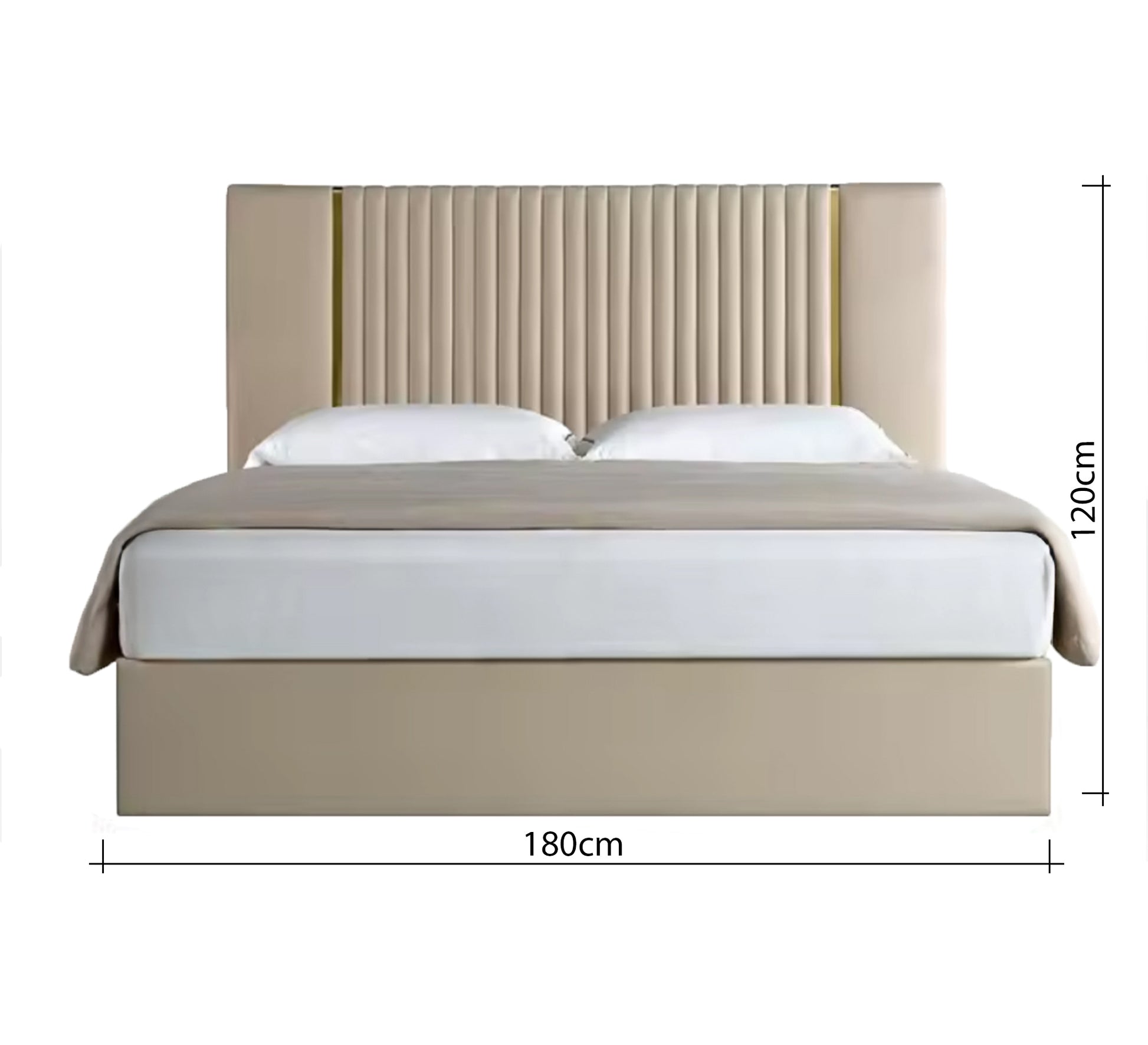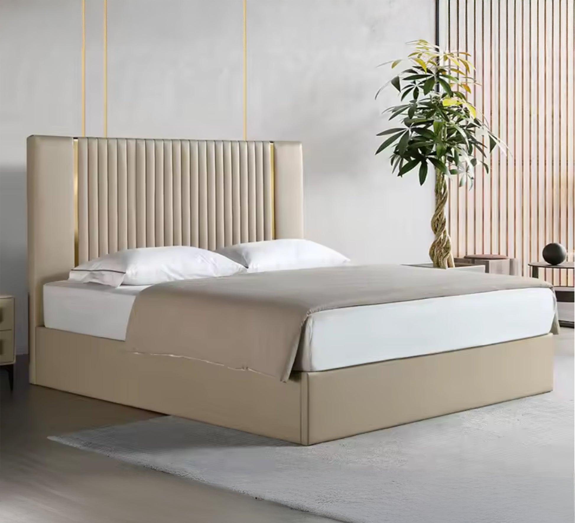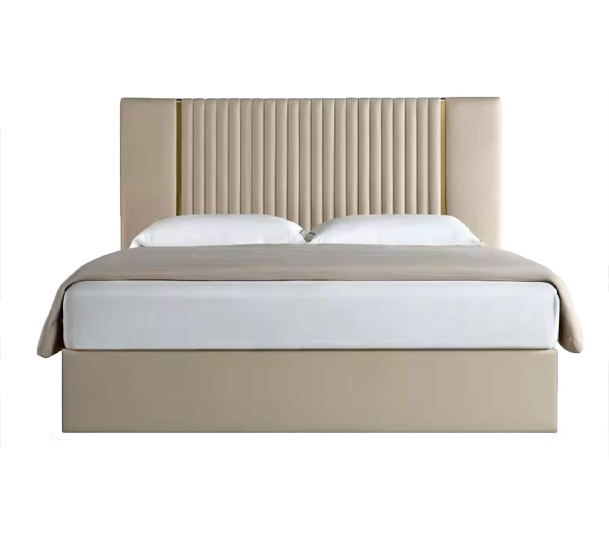 سرير بيج برأس مخطط ولمسة ذهبية أنيقة