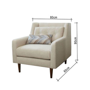 تفاصيل هذا الكرسى الفوتيية الراقى جمعت بين جمال وعملية التصميم ومتانة الخامات فقد صنع من خشب الزان الطبيعى مكسوة بافخر انواع الاقمشة فائقة النعومة غنية الملمس مميز بلون بيج رقيق وتصميم بسيط وجميل بمساند يد رفيعه ومستقيمة ومسطحة تم حشو وسائد لمسند الظهر والقاعدة باسفنج سوفت ميديم عالى الكثافة 33 ارتفع على ارجل خشبية اسطوانية جميلة فيمنحك جلسة مفعمة بالراحة والاستقرار