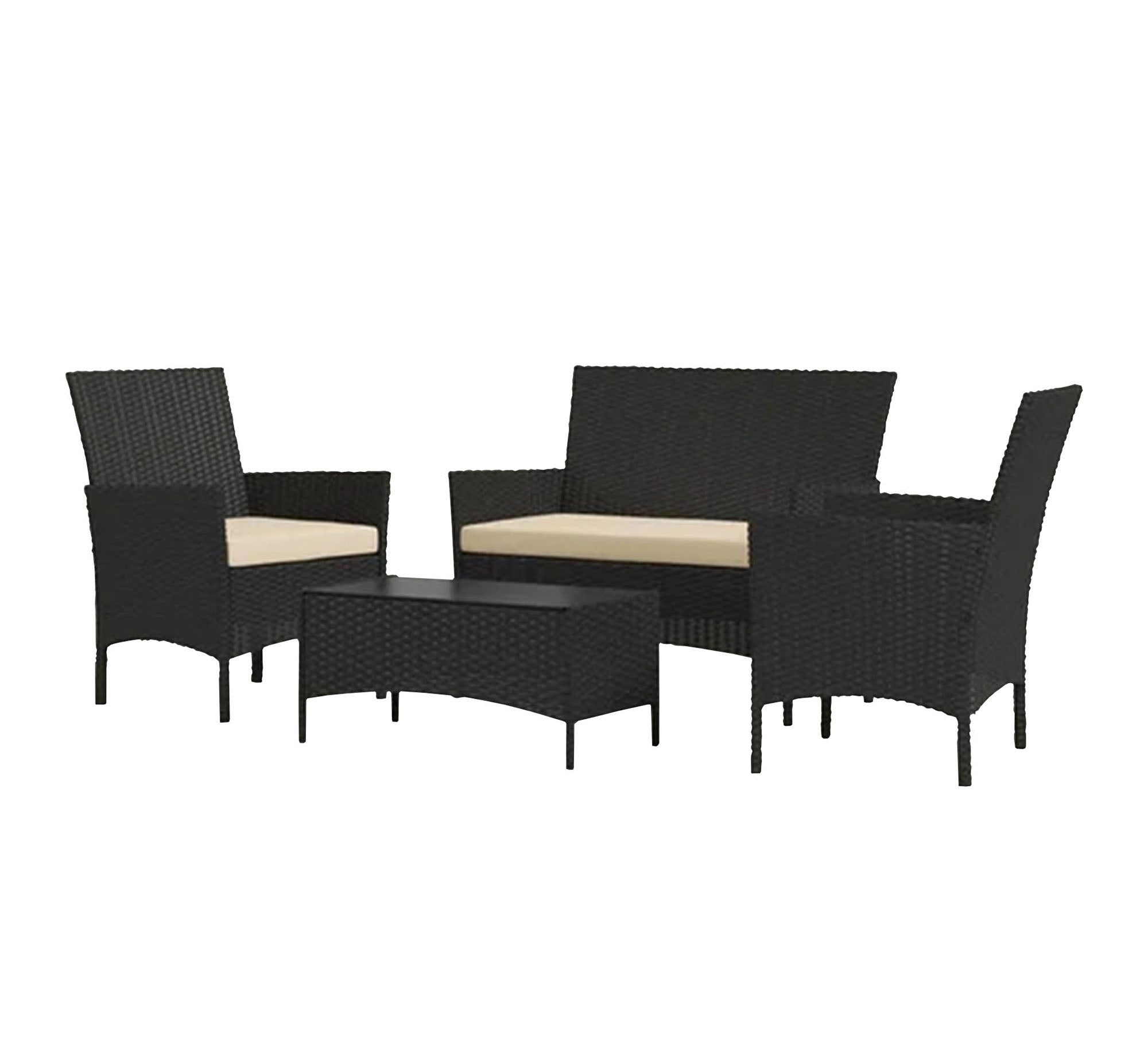 - احصل علي طقم حديقة خارجي أنيق مكون من كنبة 2 مقعد و 2 كرسي بمخدات مقعده باللون البيج و طاولة مستطيلة باللون الاسود حتي تشعر بالتجديد في حديقتك، مصنوع من الراتان البيور ، واجعل حديقتك دائمًا مُجهزة لك ولضيوفك