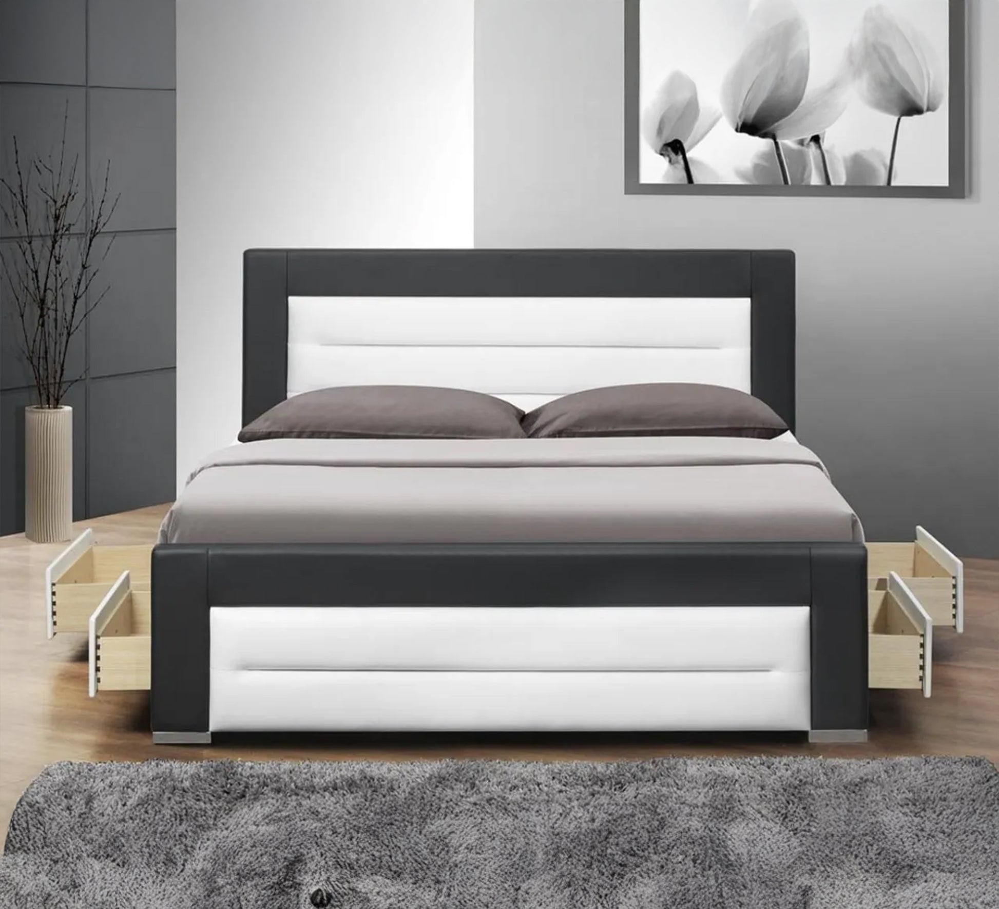 سرير أسود وأبيض بتصميم عصري