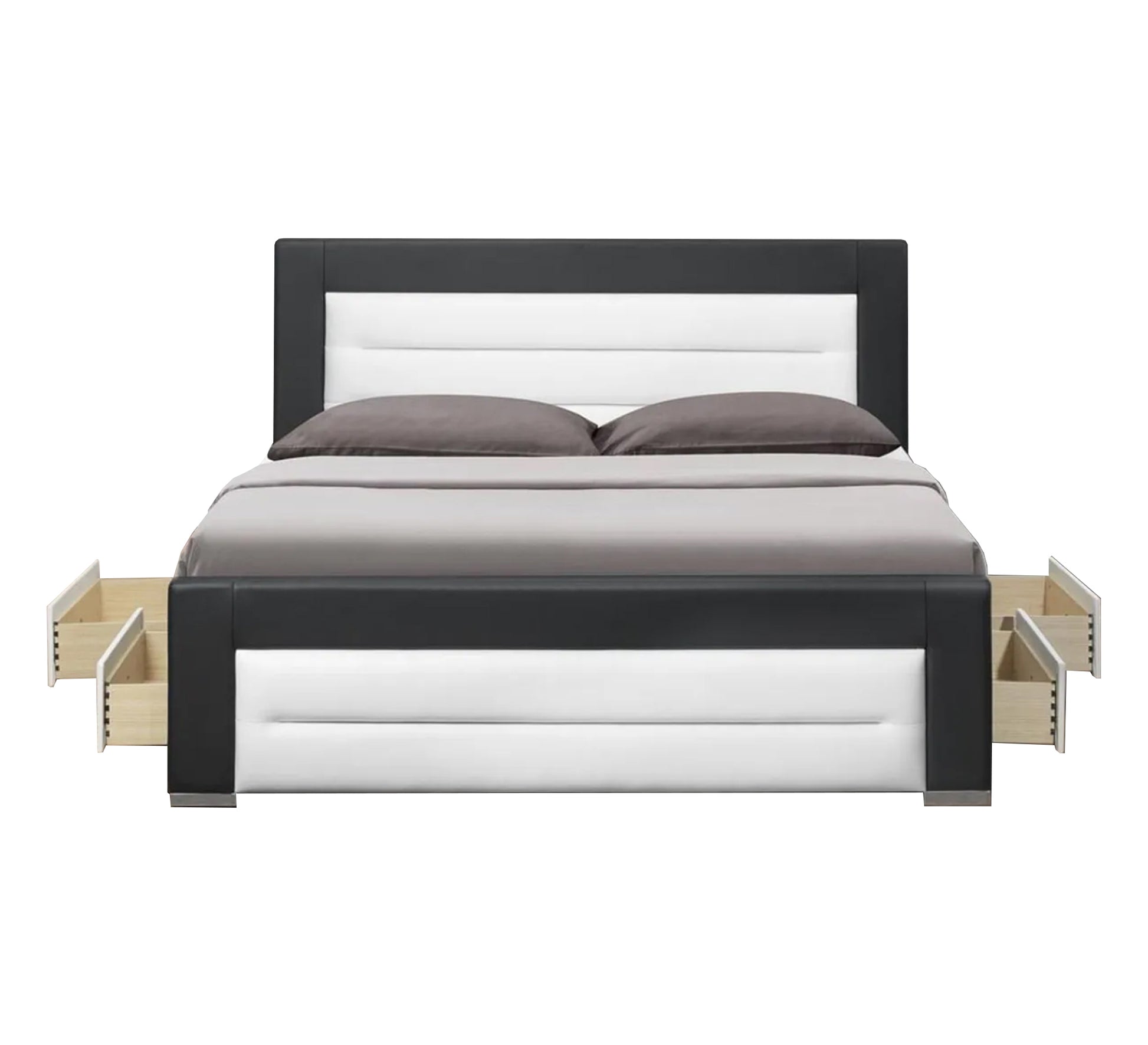 - يوفر السرير أيضًا أدراج تخزين مدمجة على جانبيه، مما يجعله حلاً عمليًا وموفرًا للمساحة لغرف النوم الحديثة.
