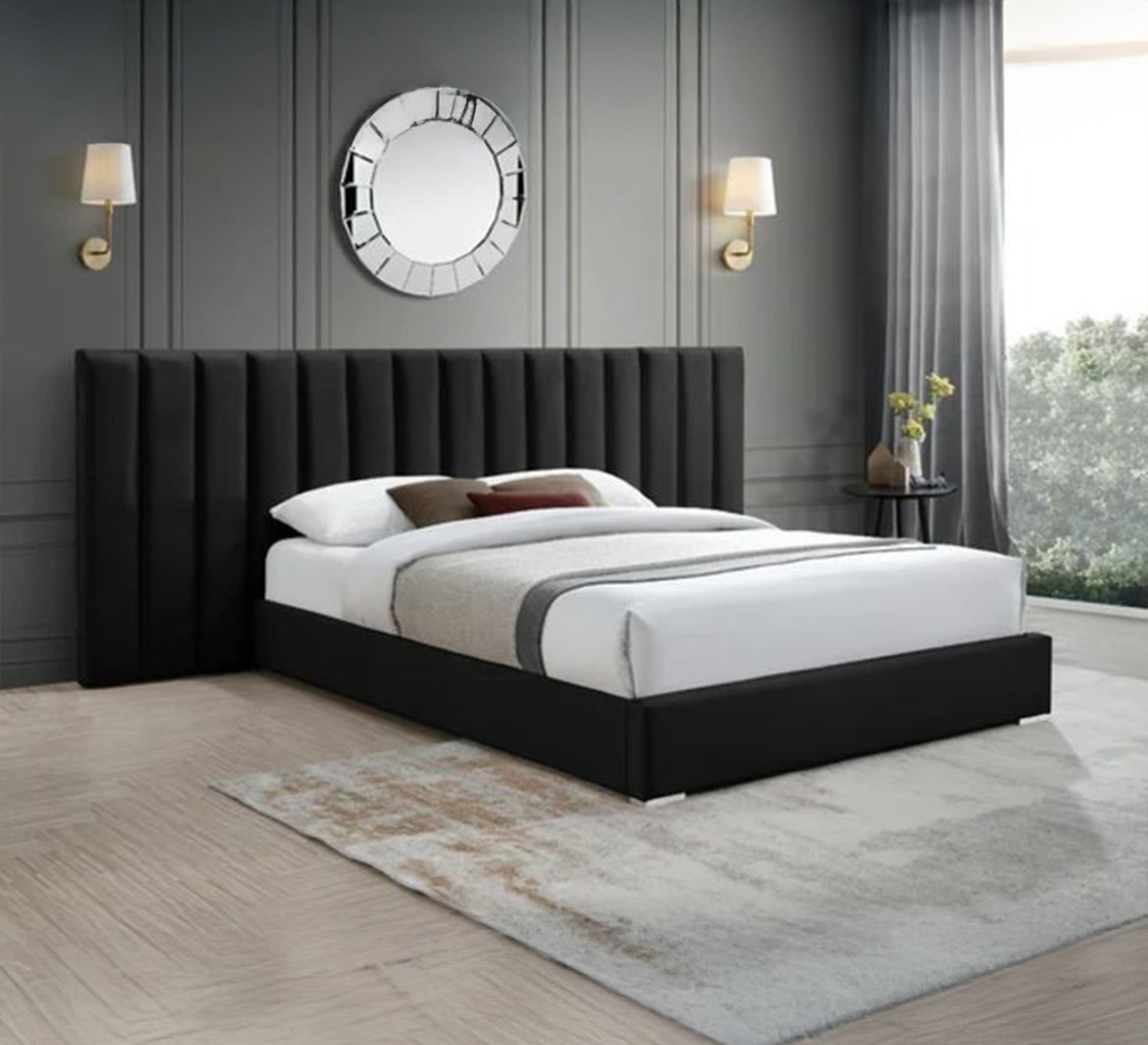 - ترتكز القاعدة القوية على أرجل معدنية فضية لامعة، مما يجعله قطعة مركزية مثالية لغرفة نوم تبحث عن الأناقة العصرية والراحة.