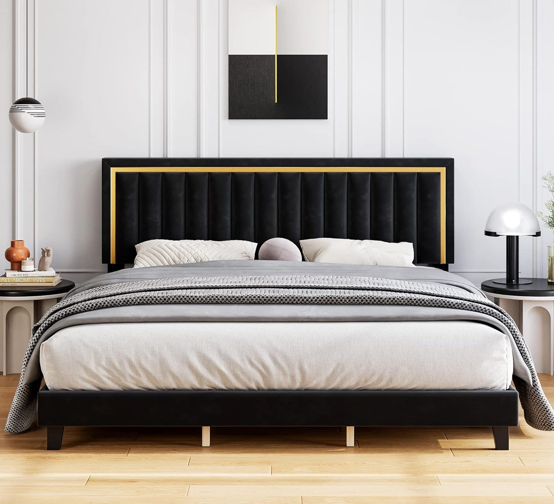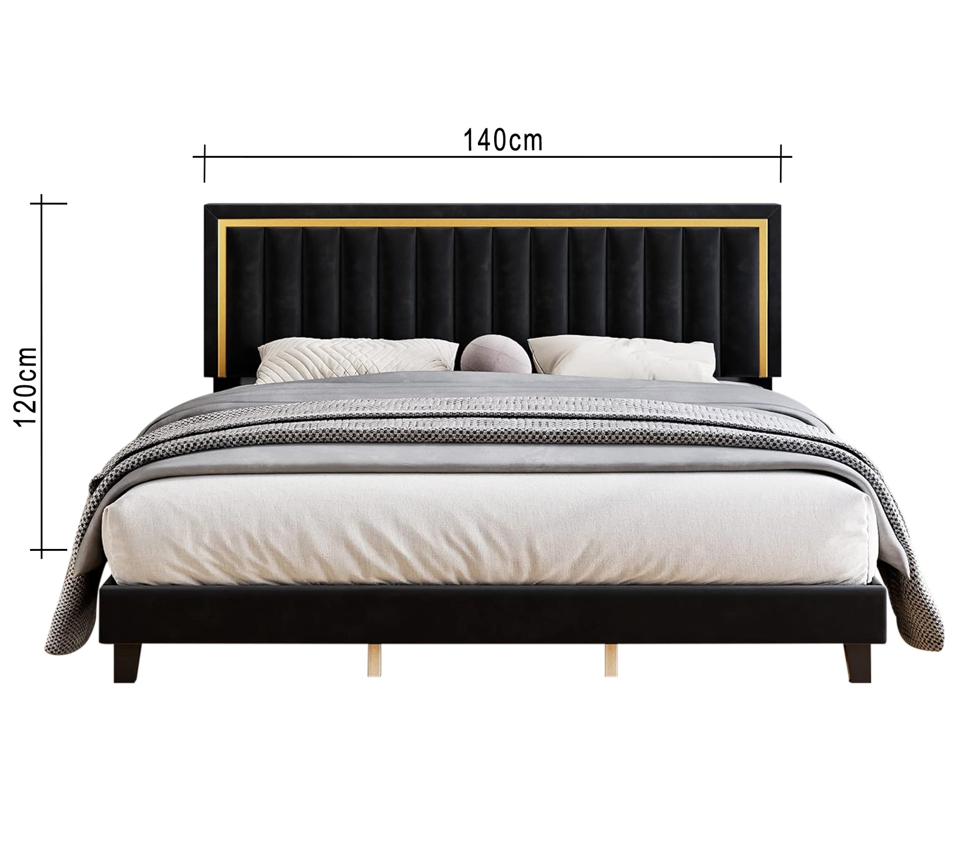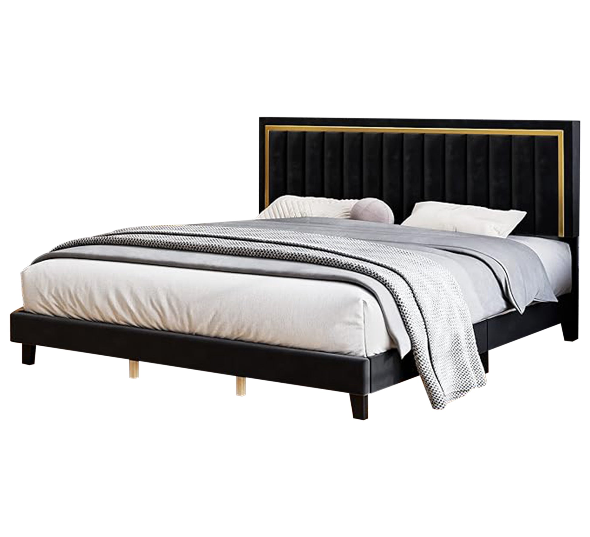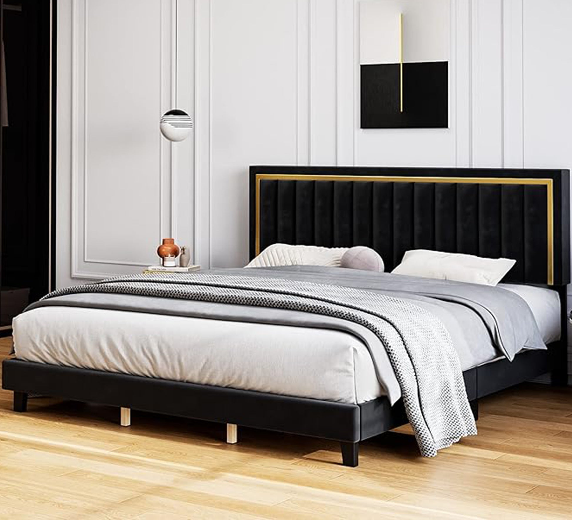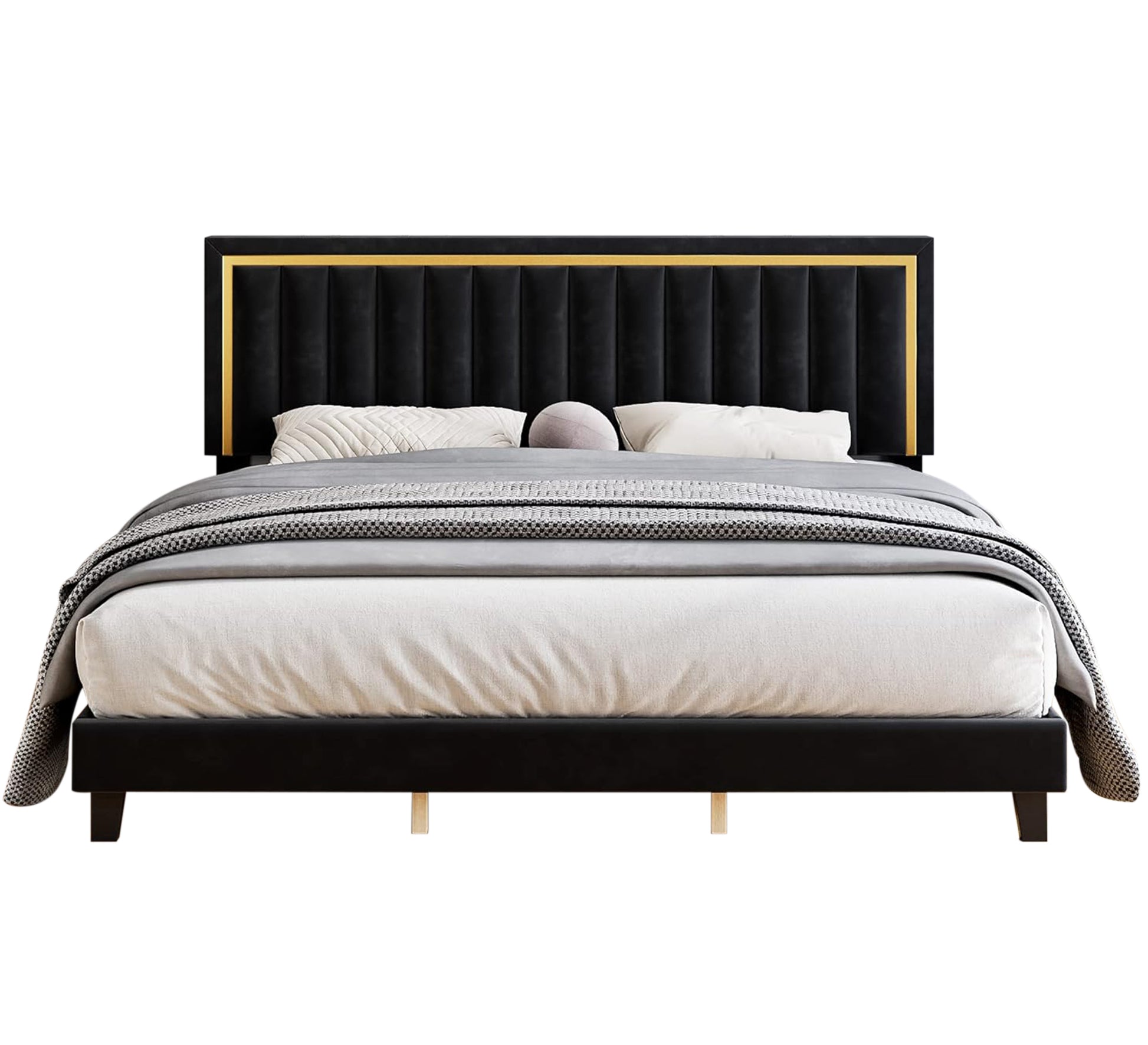 سرير أسود بفخامة ذهبية وأناقة معاصرة