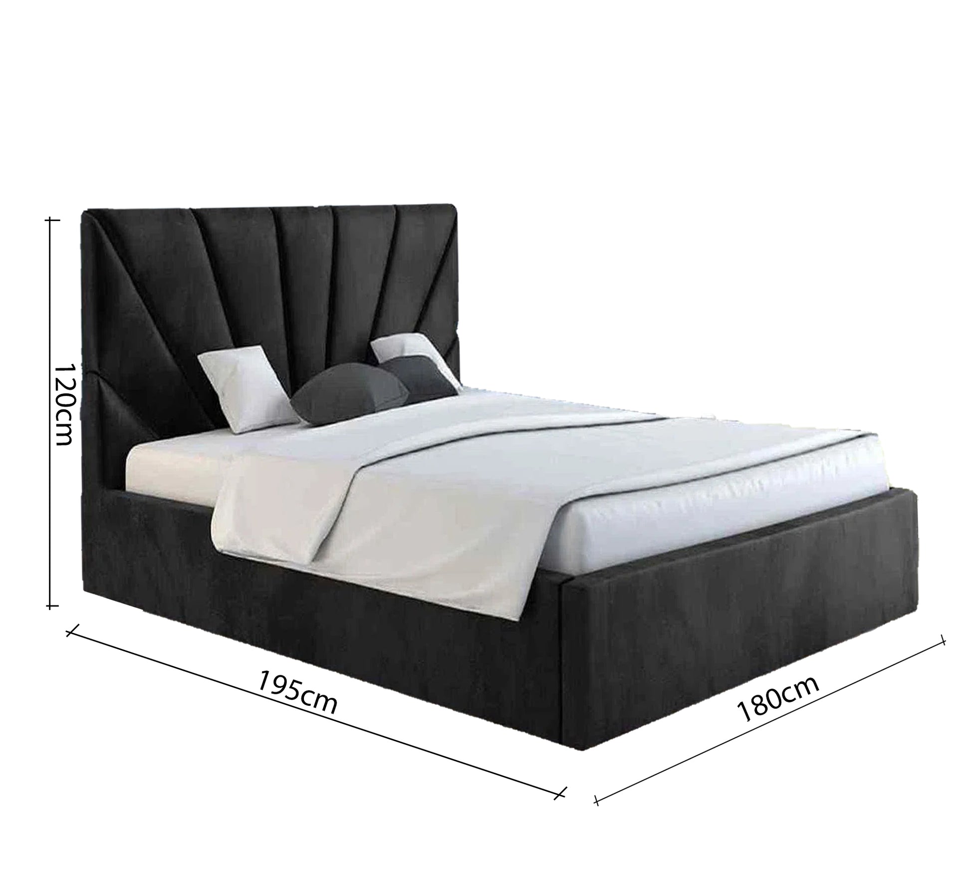 - السرير بطول 195 سم وارتفاع مسند الظهر 120 سم وبعروض مختلفة 100 و120 و140 و160 و180 سم.