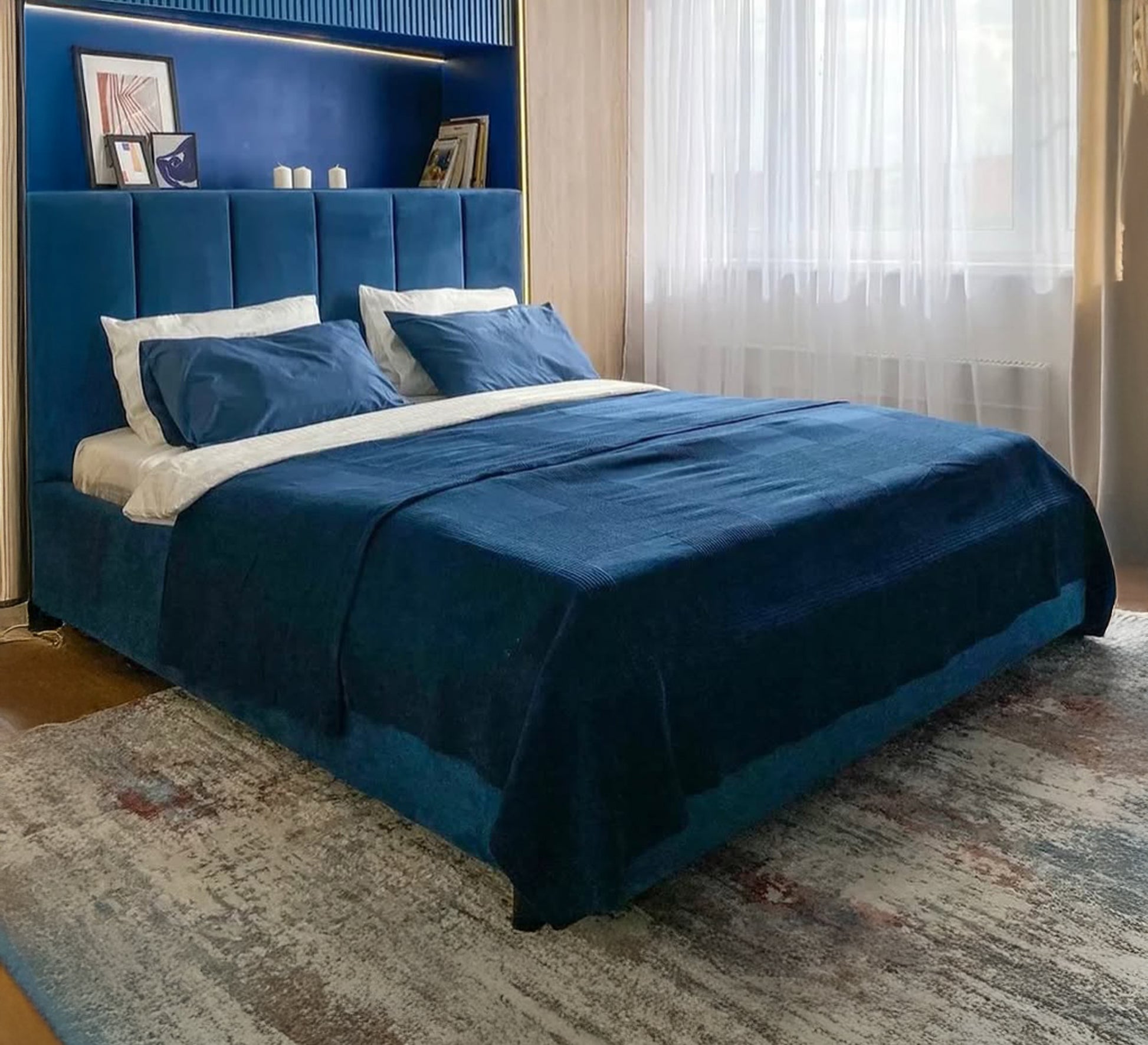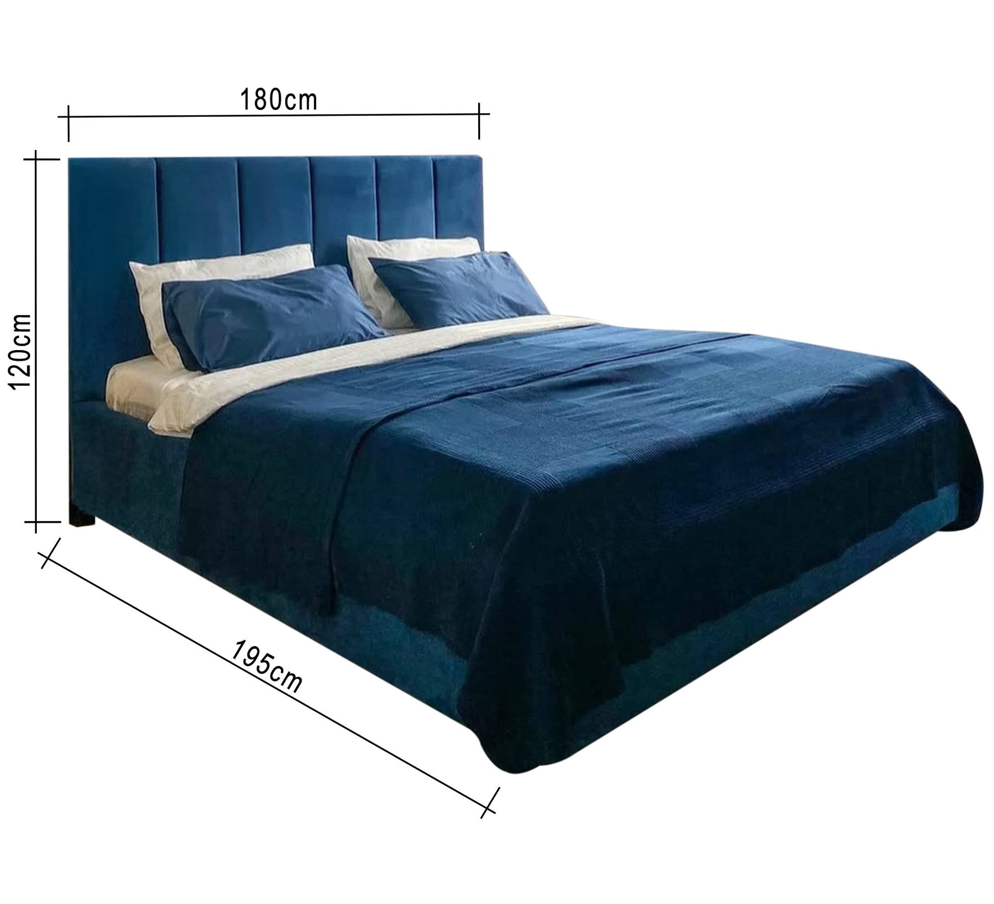 - السرير بطول 195 سم وارتفاع مسند الظهر 120 سم وبعروض مختلفة 100 و120 و140 و160 و180 سم.