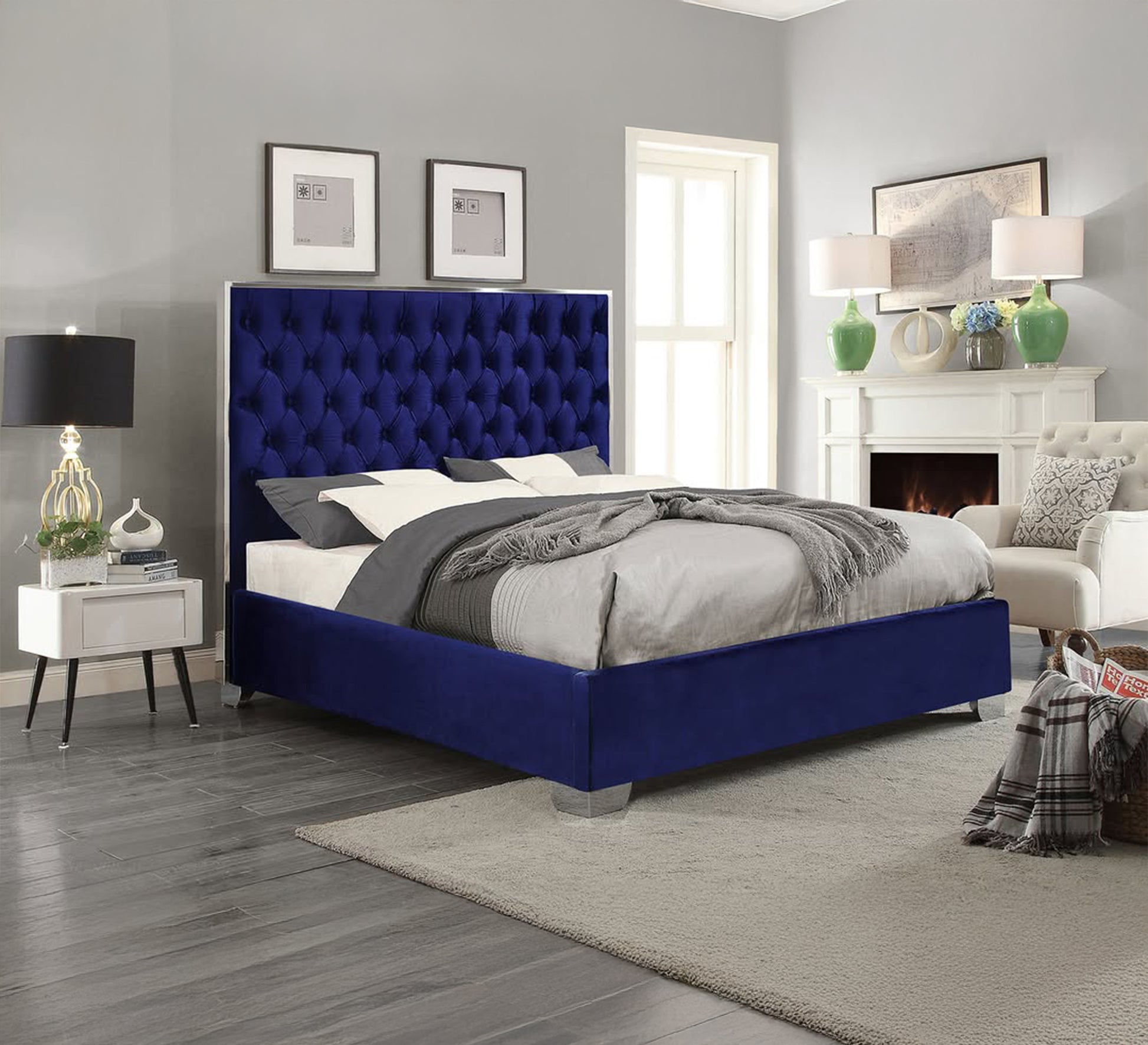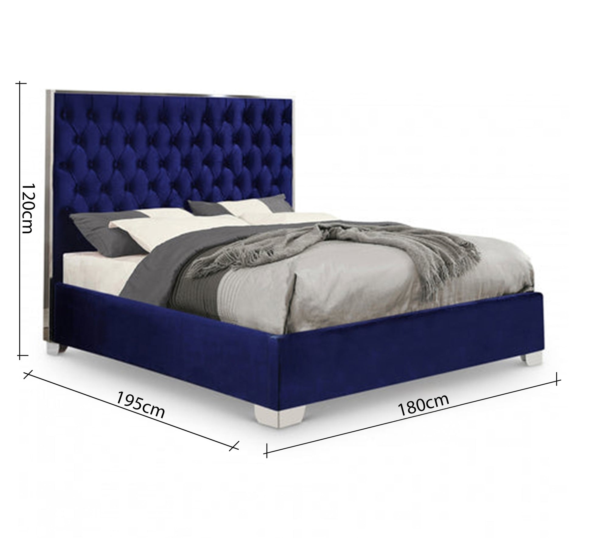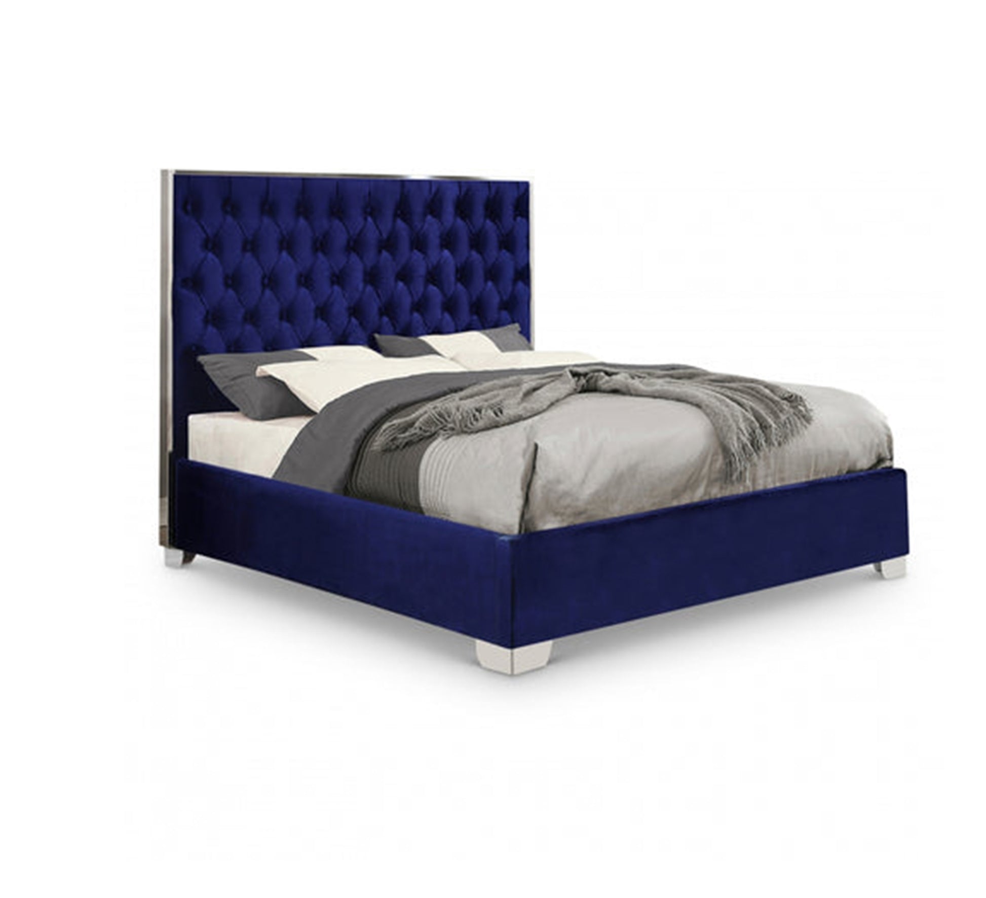 سرير أزرق مخملي بتنجيد كابتونيه بفخامة بارزة