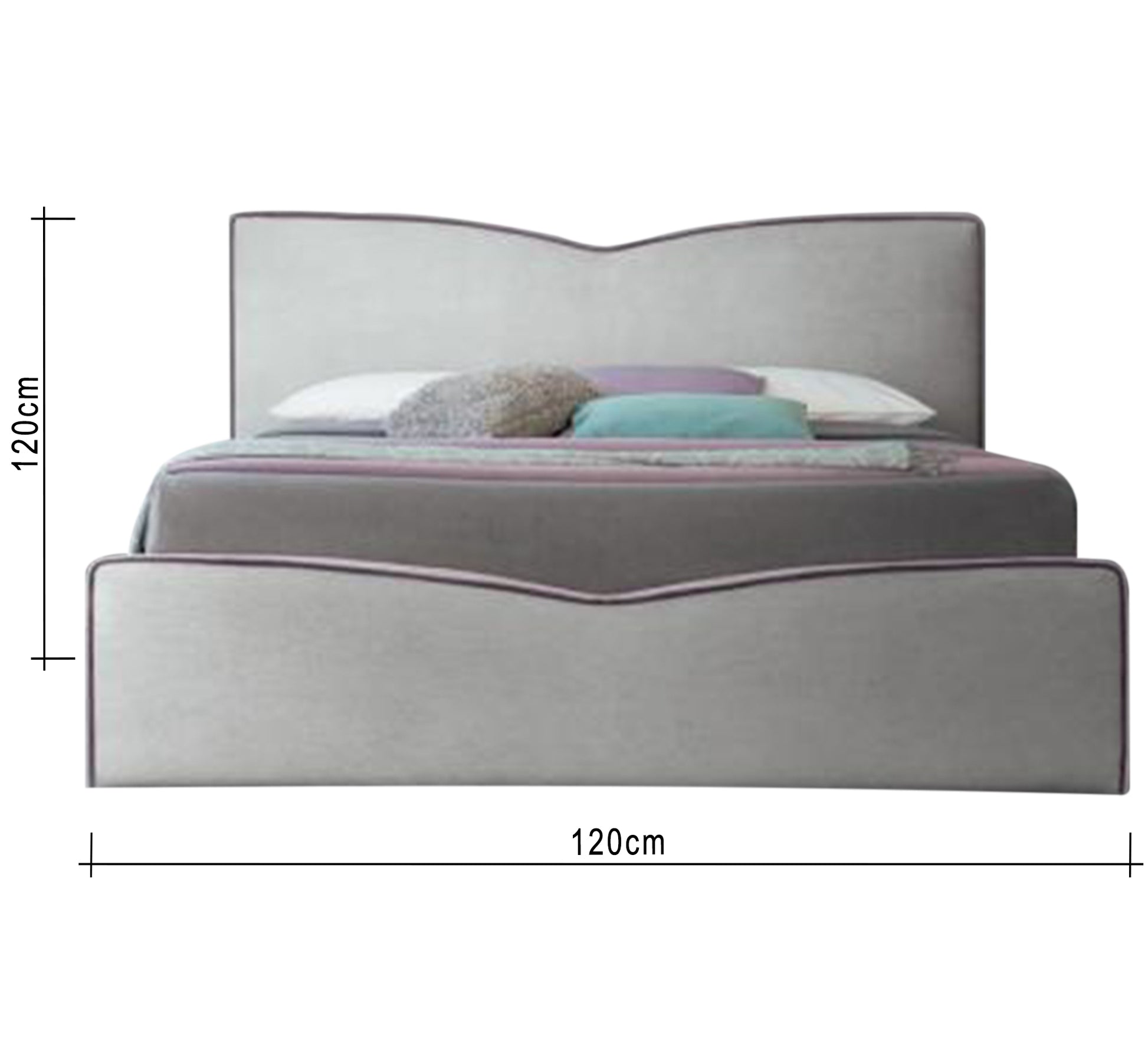 - السرير بطول 195 سم وارتفاع مسند الظهر 120 سم وبعروض مختلفة 100 و120 و140 و160 و180 سم.