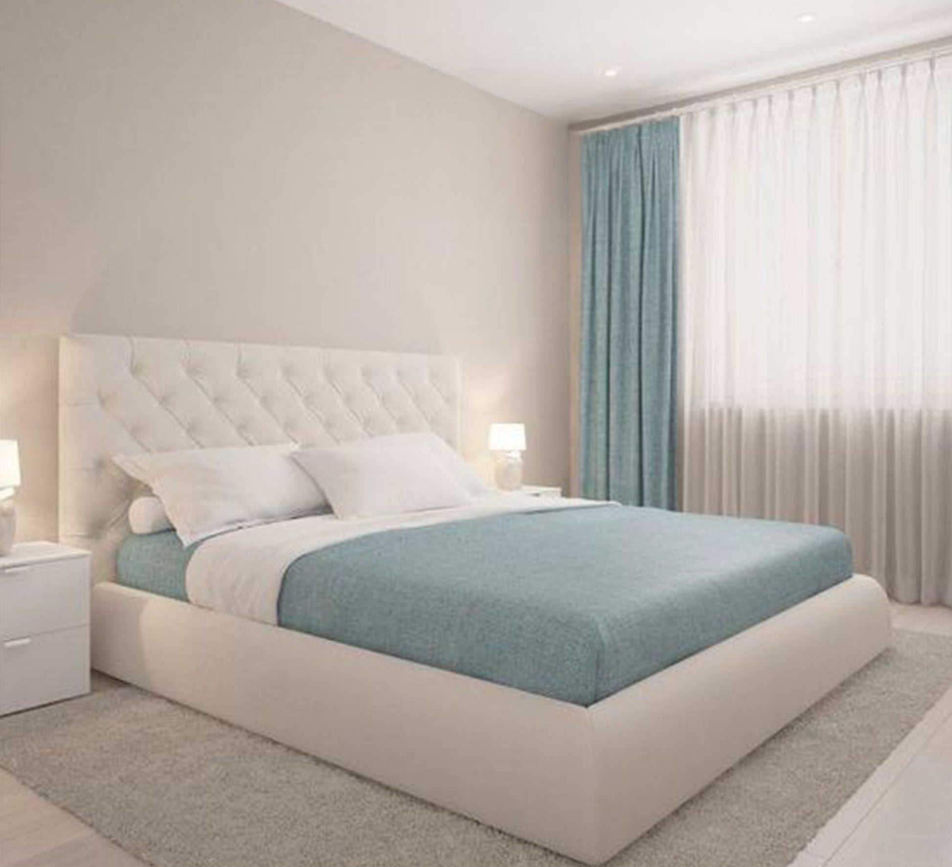 - يتميز هذا السرير بتصميم بسيط وهادئ يعتمد على الألوان الفاتحة والمريحة، مما يخلق أجواءً مثالية للاسترخاء والهدوء.