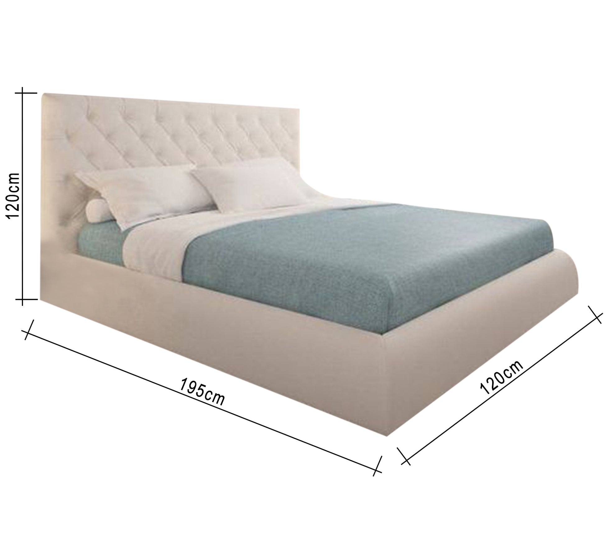 - السرير بطول 195 سم وارتفاع مسند الظهر 120 سم وبعروض مختلفة 100 و120 و140 و160 و180 سم.