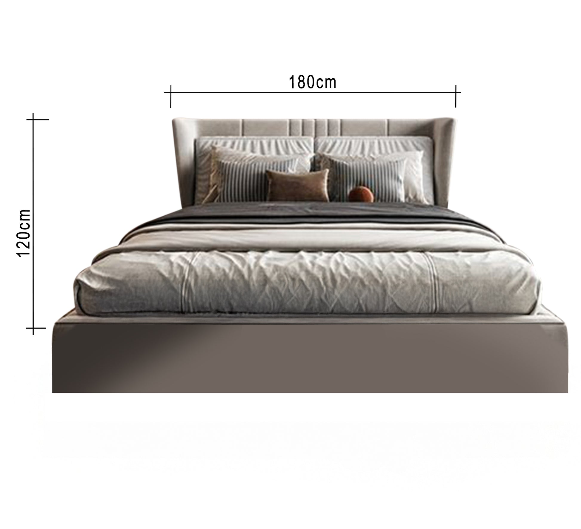 - السرير بطول 195 سم وارتفاع مسند الظهر 120 سم وبعروض مختلفة 100 و120 و140 و160 و180 سم.