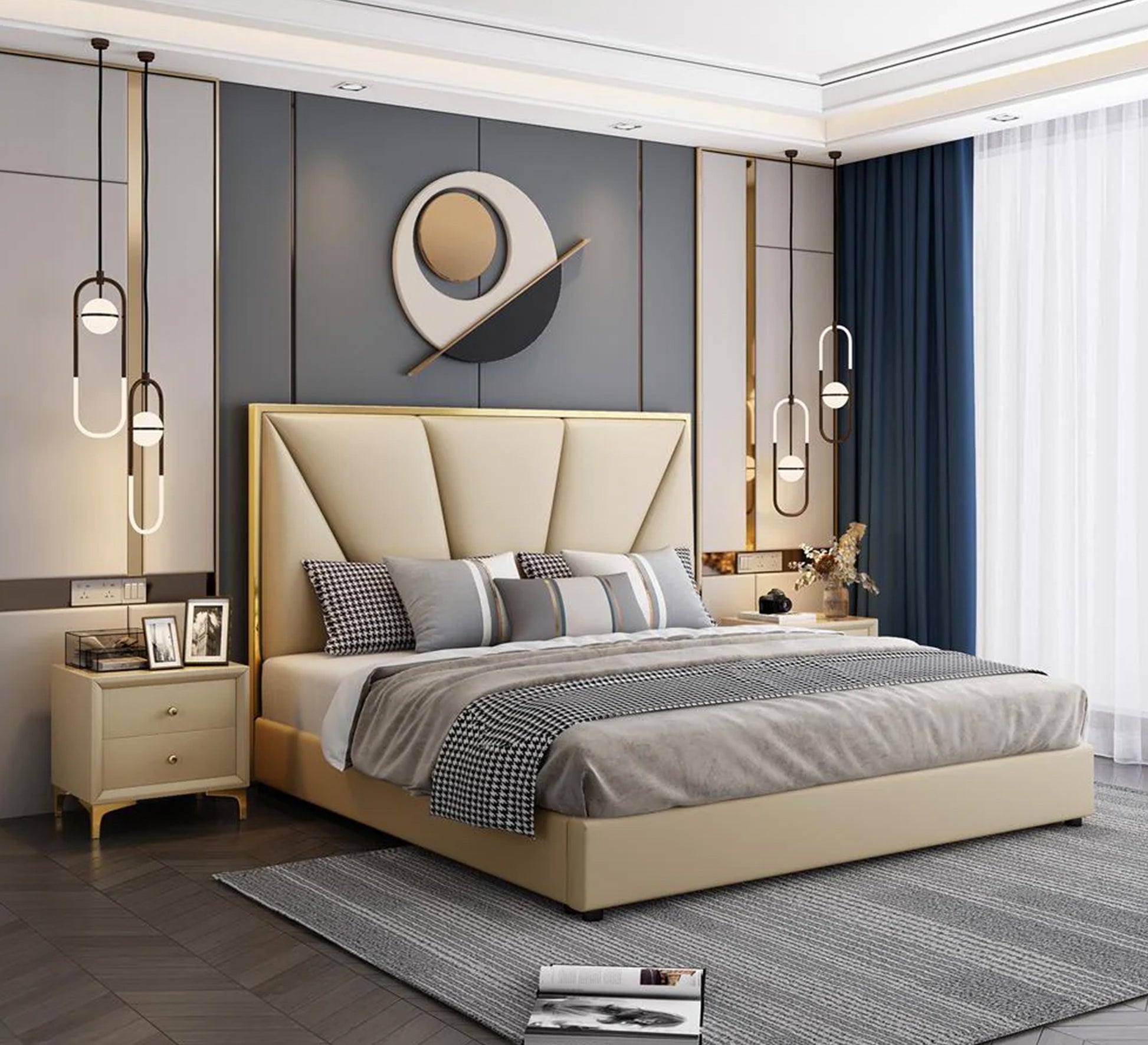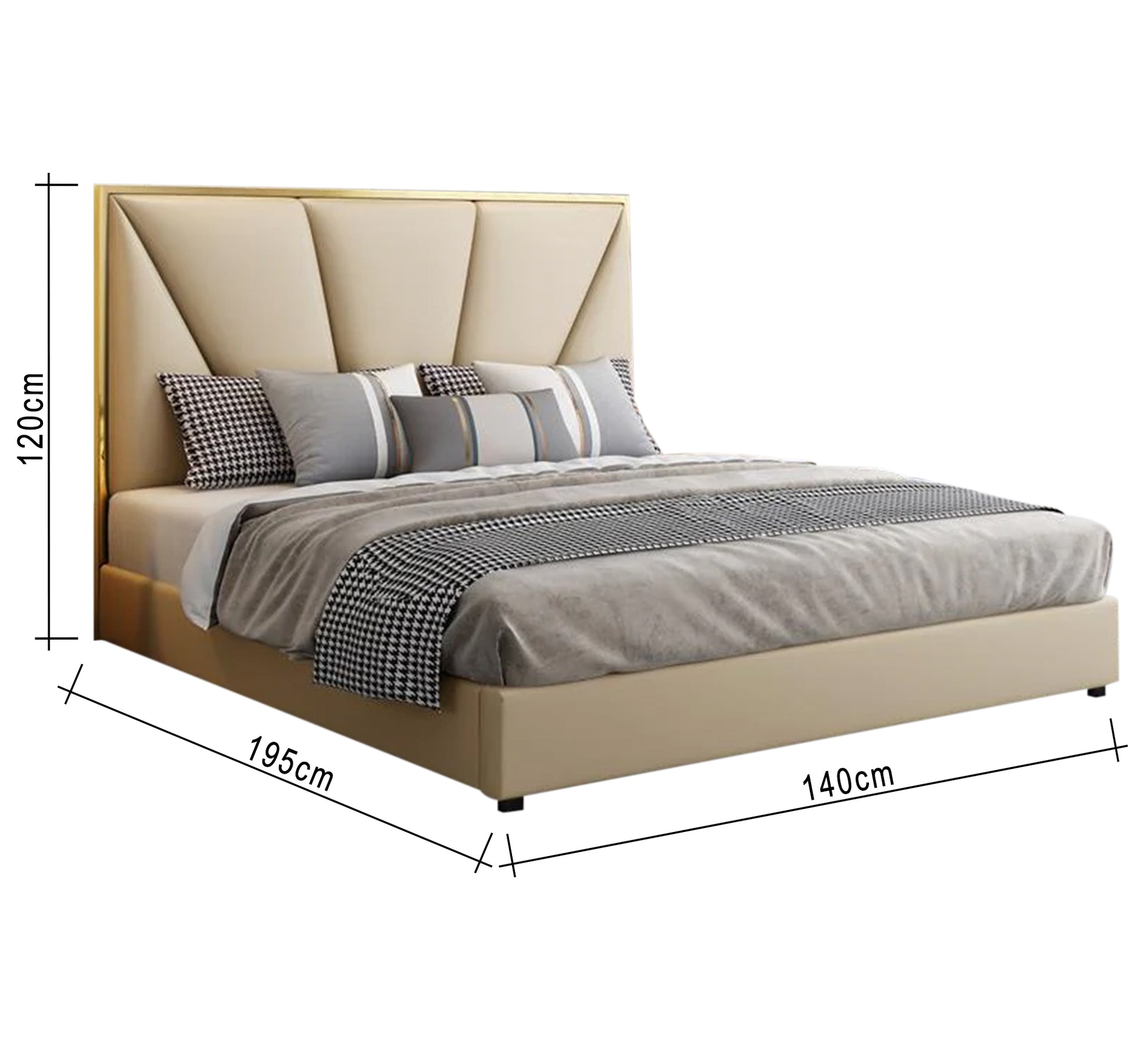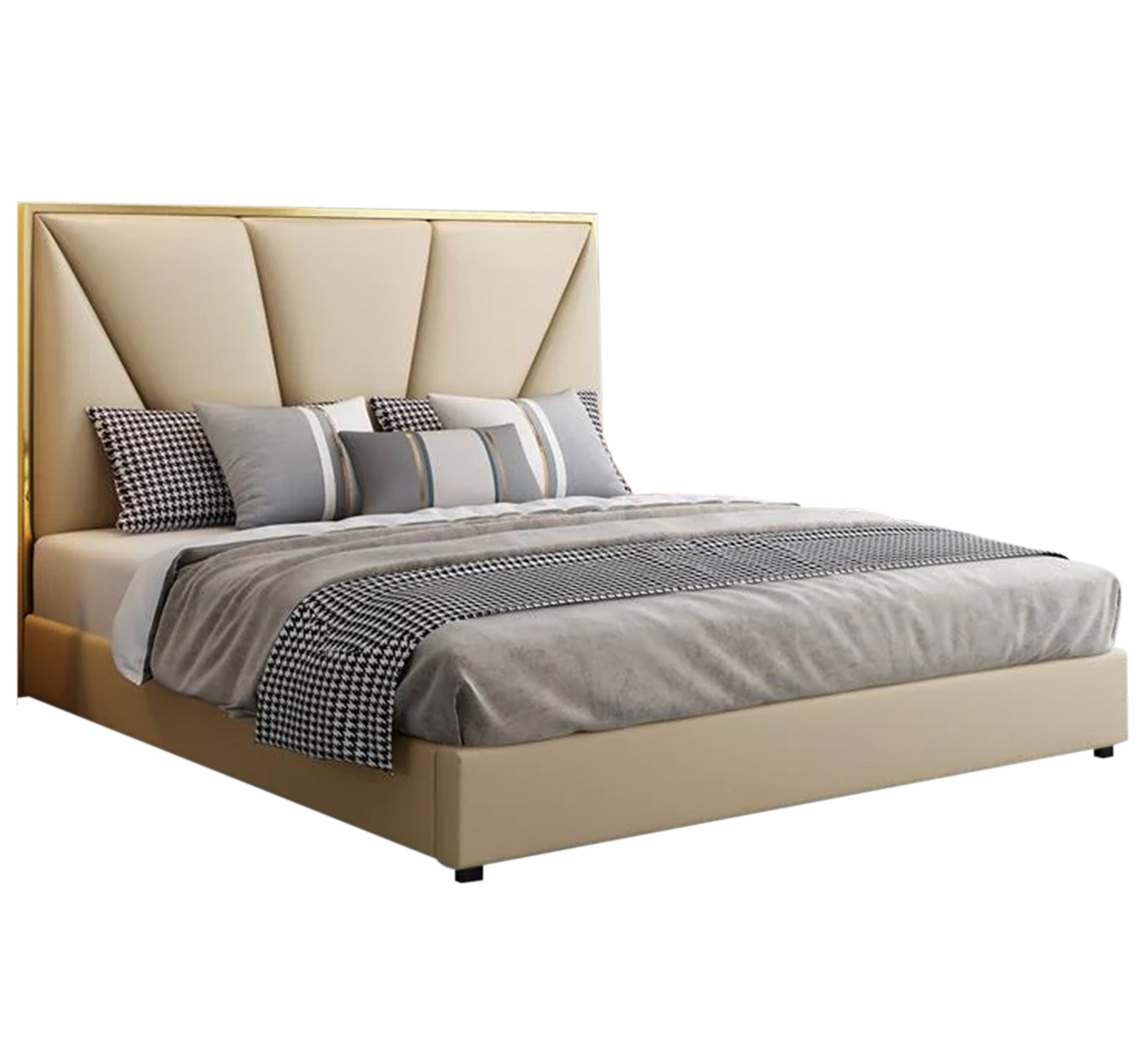سرير أنيق برأس هندسي بيج ذهبي فاخر