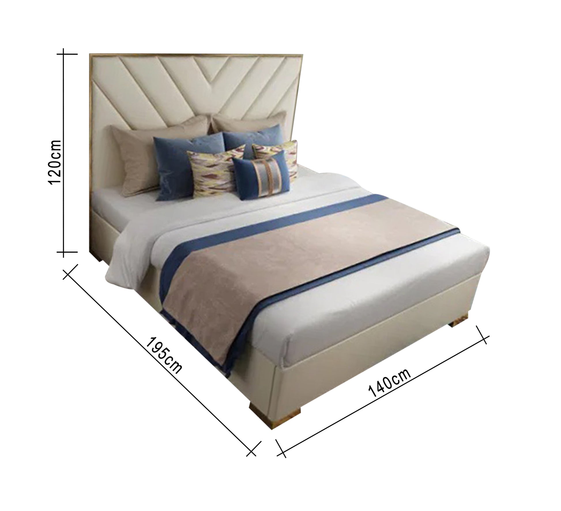 - السرير بطول 195 سم وارتفاع مسند الظهر 120 سم وبعروض مختلفة 100 و120 و140 و160 و180 سم.