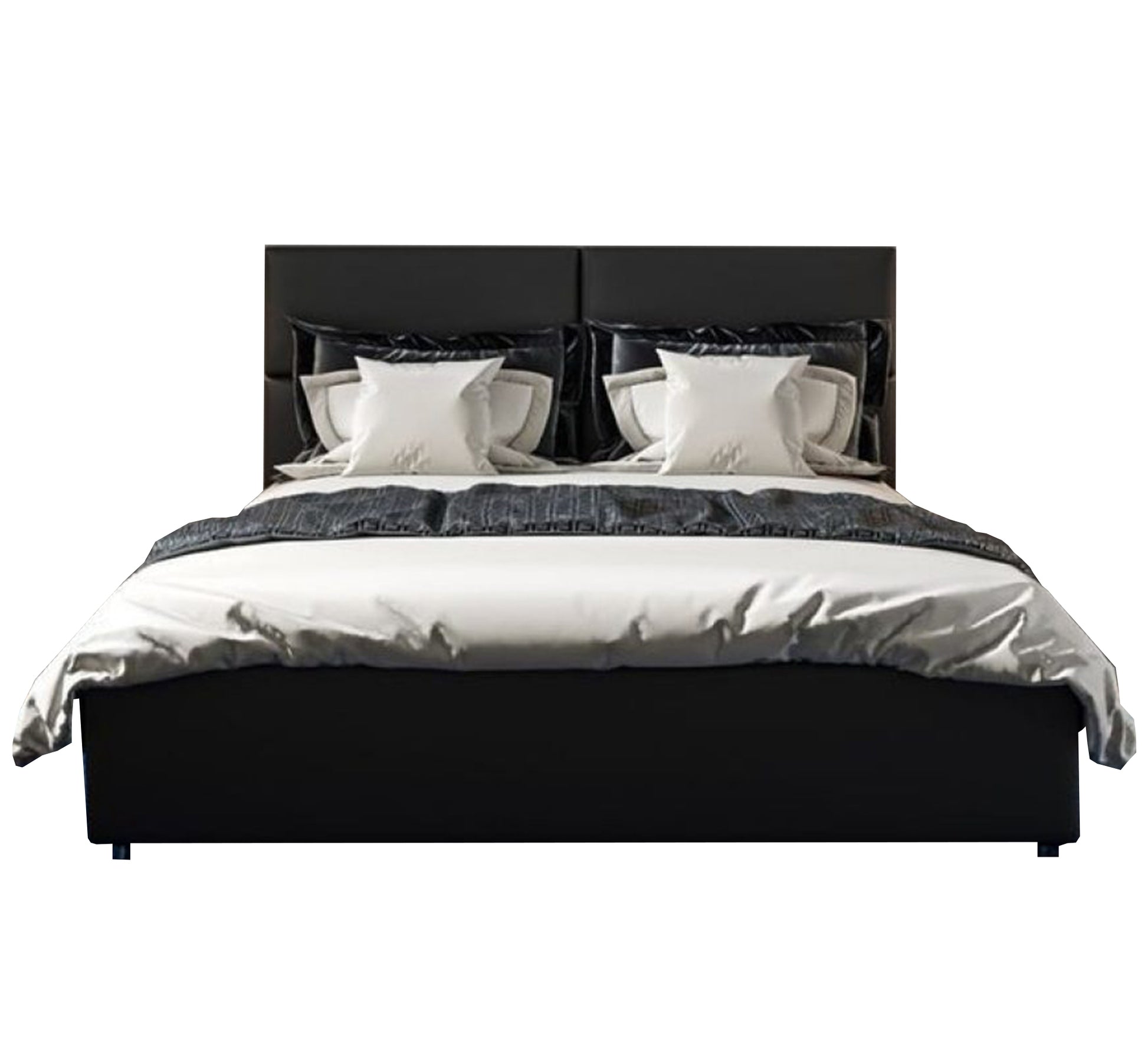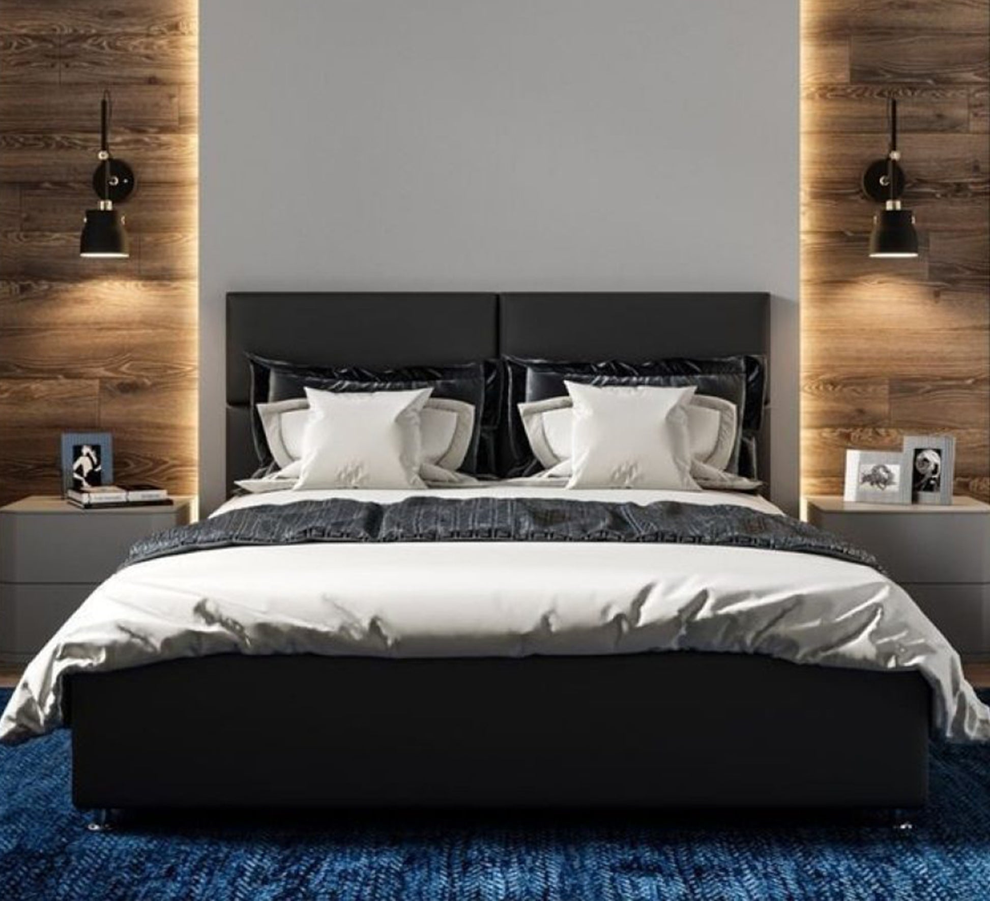 سرير أسود أنيق برأس مبطن وراحة عصرية