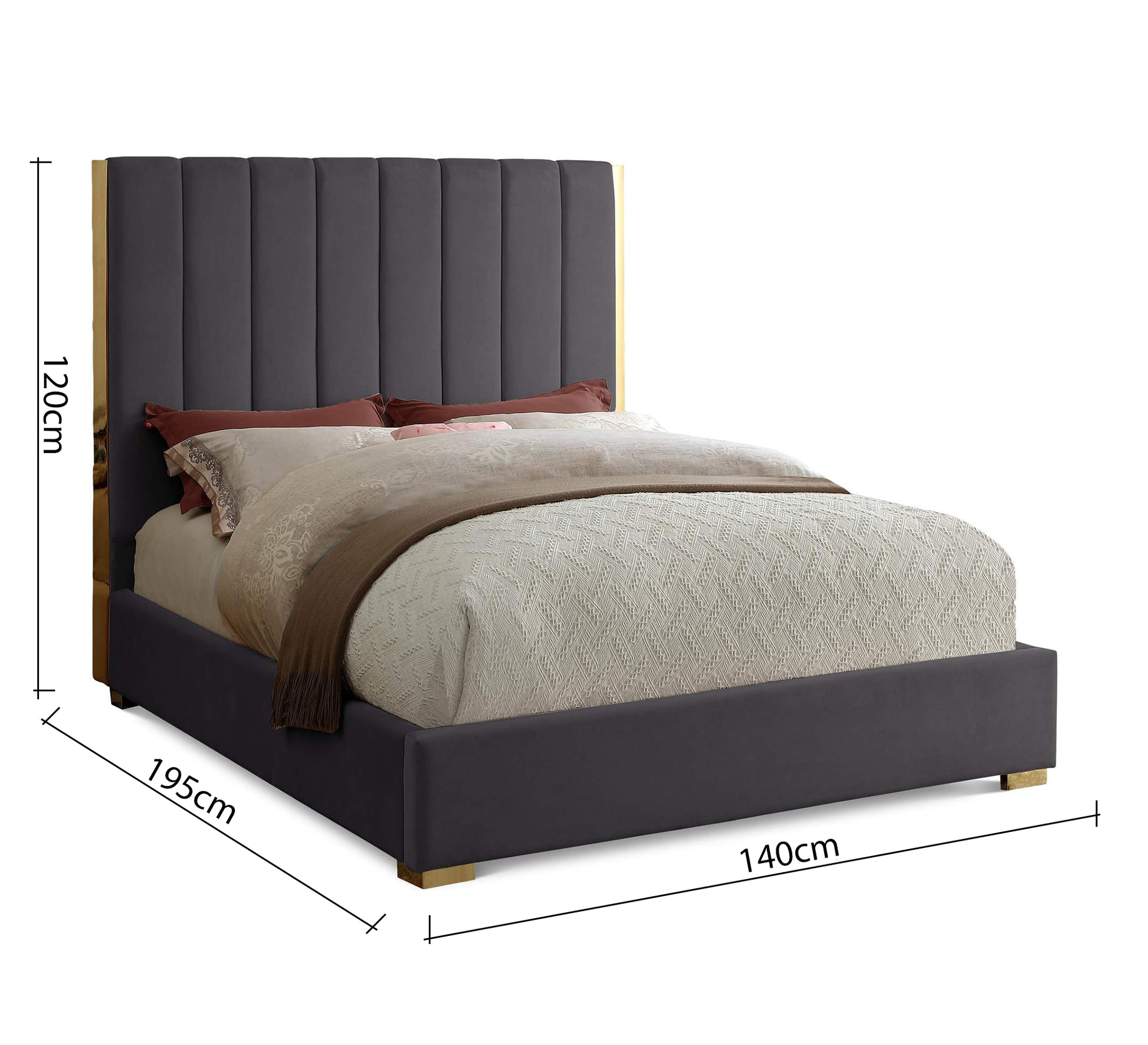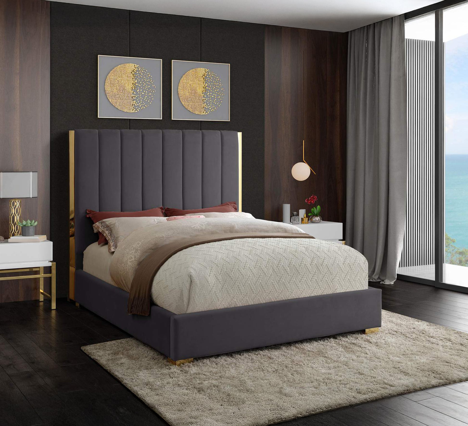 سرير رمادي بإطار ذهبي وفخامة عصرية