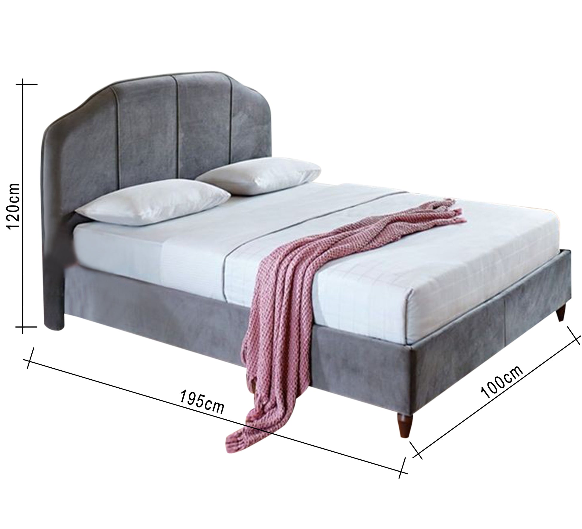 - السرير بطول 195 سم وارتفاع مسند الظهر 120 سم وبعروض مختلفة 100 و120 و140 و160 و180 سم.