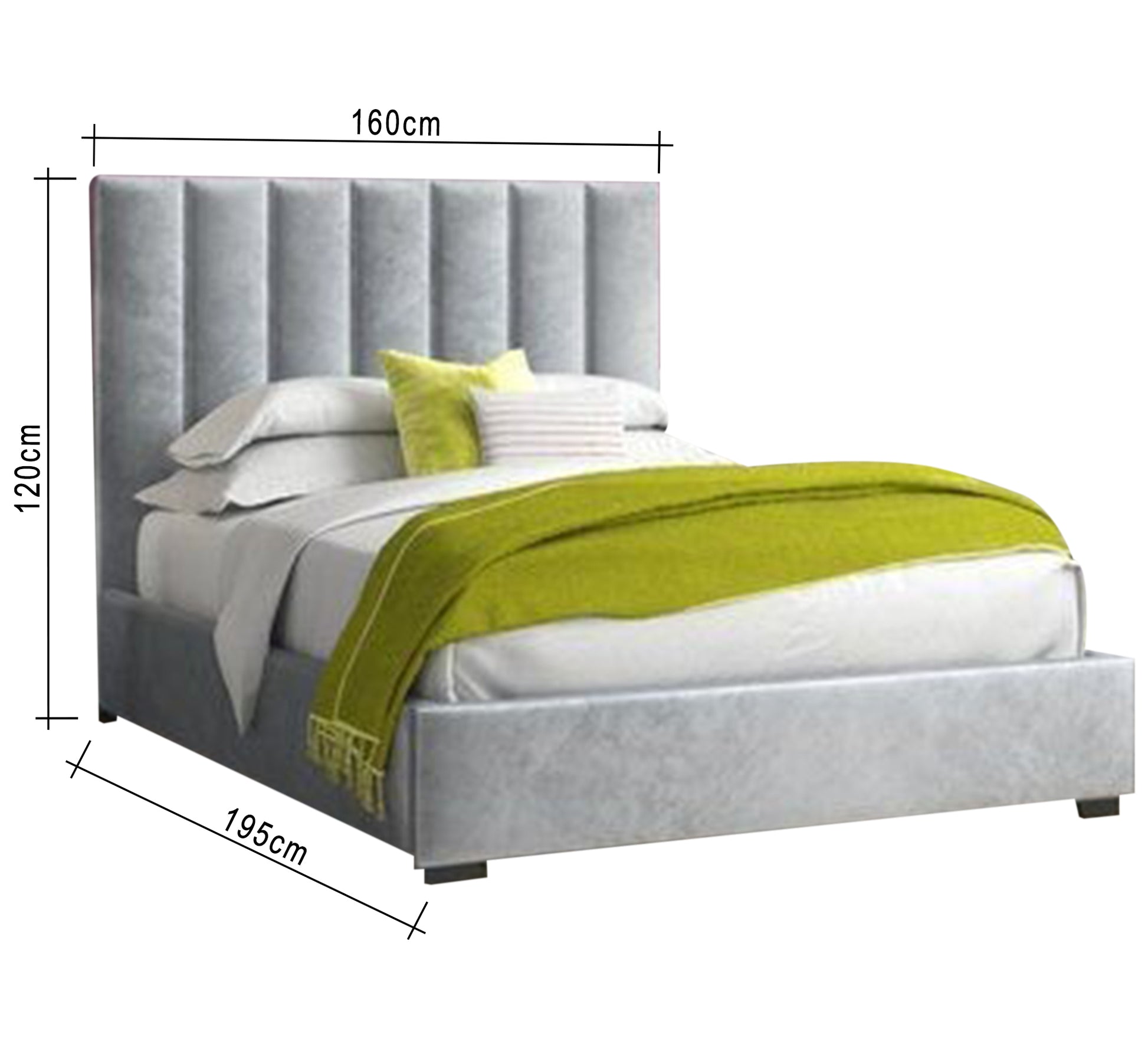 - السرير بطول 195 سم وارتفاع مسند الظهر 120 سم وبعروض مختلفة 100 و120 و140 و160 و180 سم.