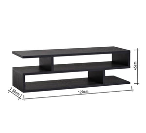 - تأتي وحدة التليفزيون ذات الطراز الحديث بشكل حرف S مقلوب لتأخذ مكانها في منزلك، تتميز بتصميم يتيح لك وضع متعلقاتك بسهولة لتخزين اغراضك المختلفة وبعض الانتيكات للزينه باللون الاسود والخشبي.