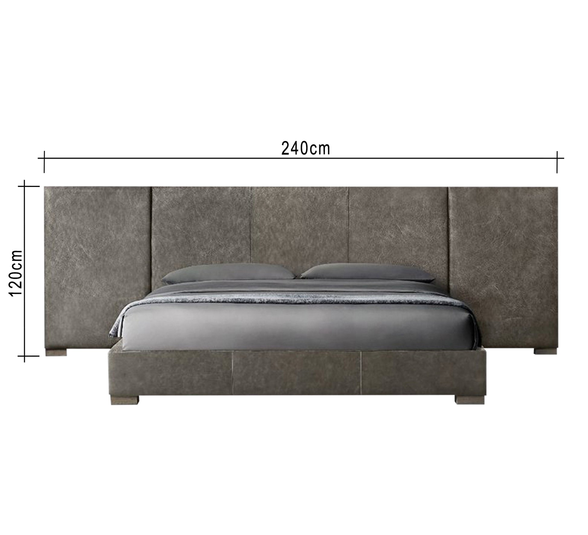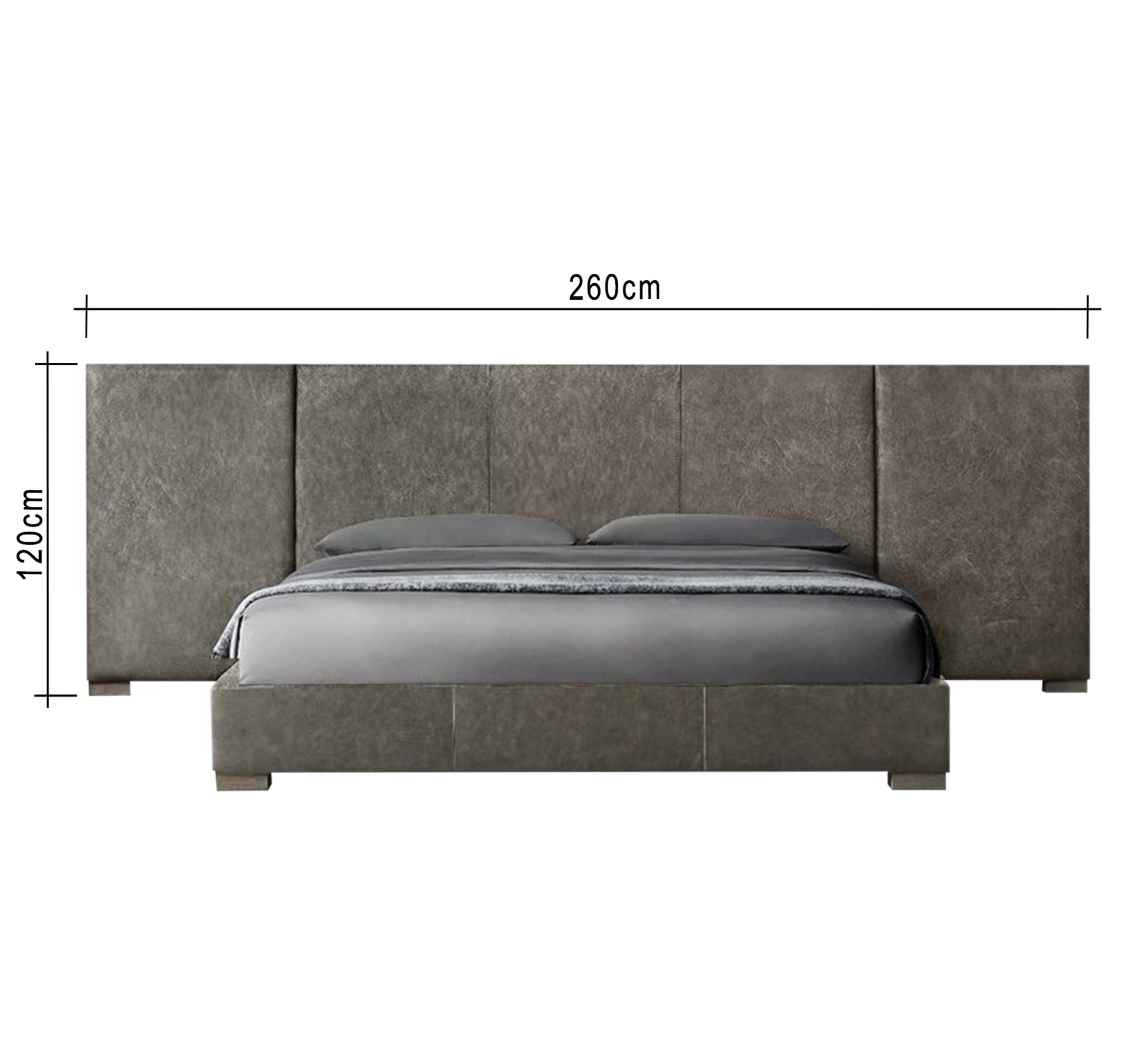 - السرير بطول 195 سم وارتفاع مسند الظهر 120 سم وبعروض مختلفة 240 و260 سم.