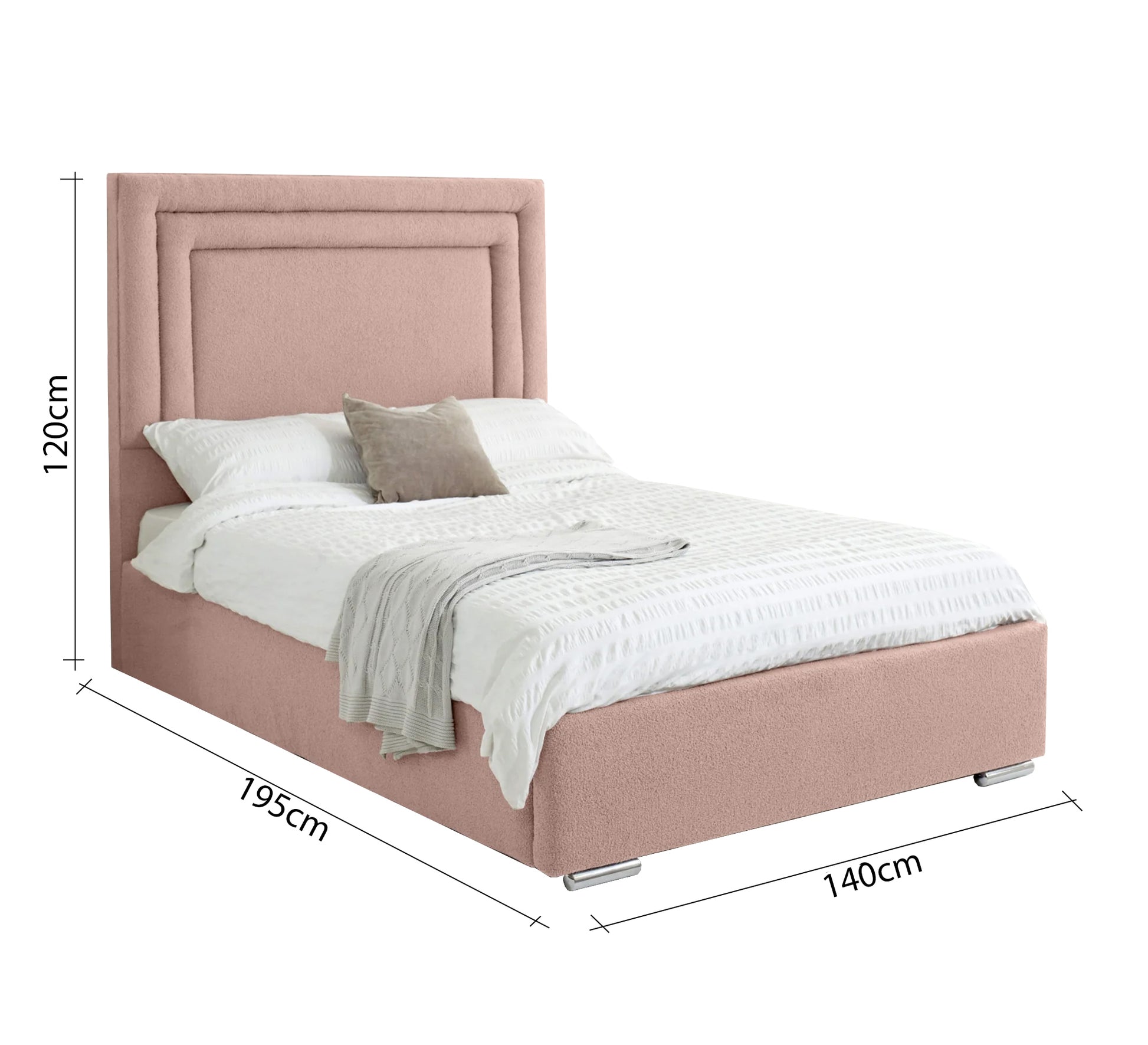 - السرير بطول 195 سم وارتفاع مسند الظهر 120 سم وبعروض مختلفة 100 و120 و140 و160 و180 سم.