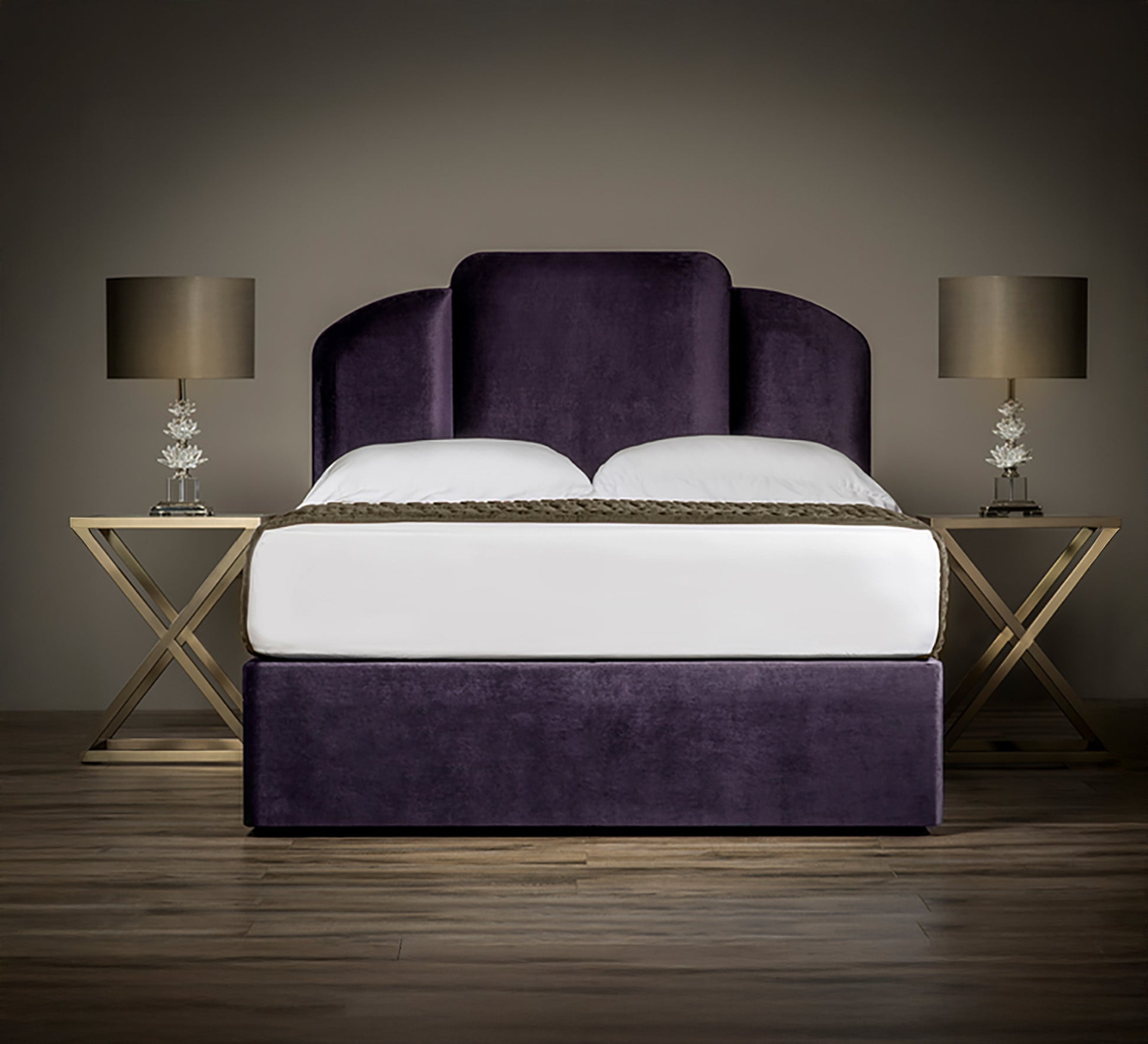 سرير بنفسجي بتصميم فني مخملي فاخر