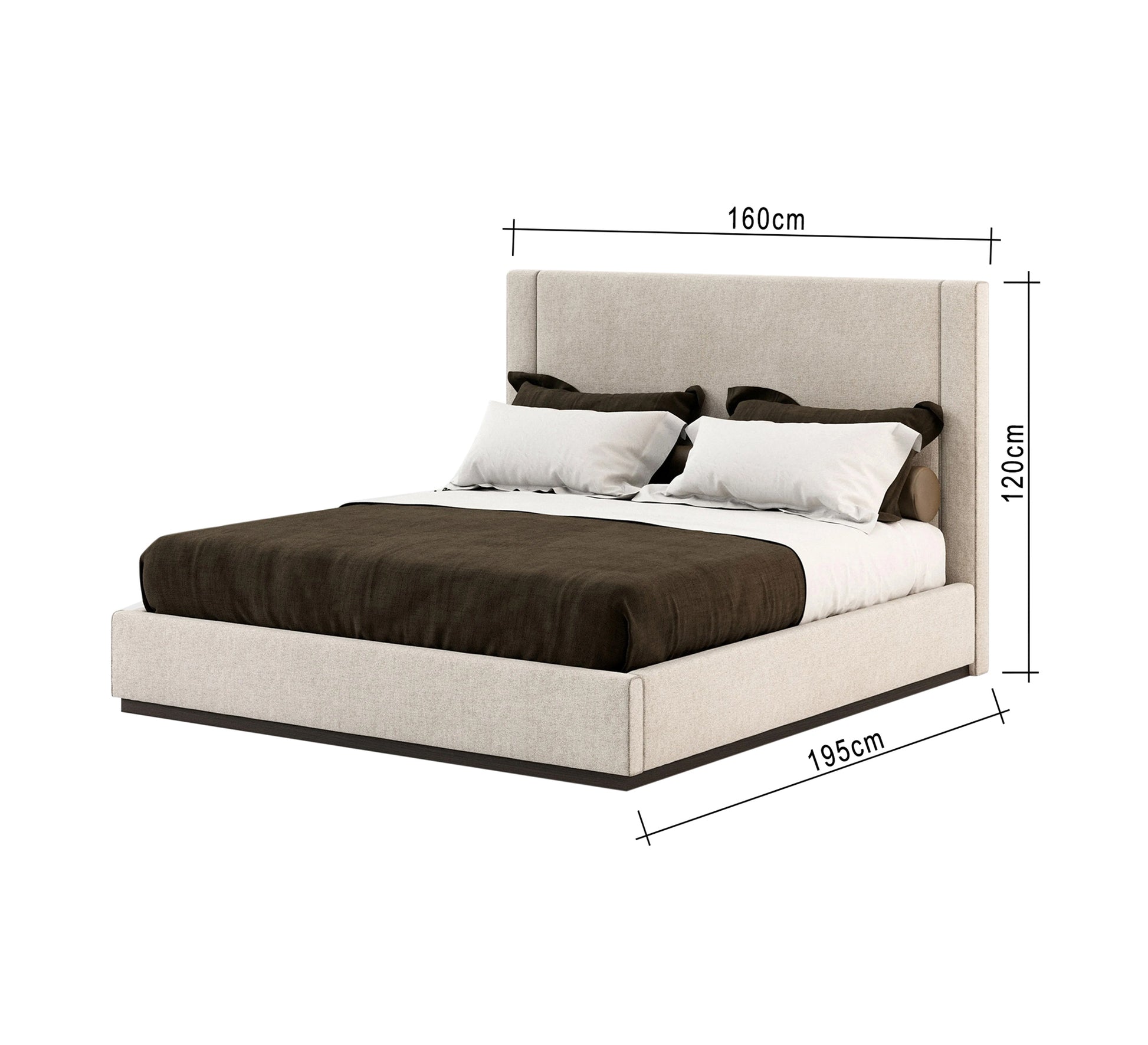 - السرير بطول 195 سم وارتفاع مسند الظهر 120 سم وبعروض مختلفة 100 و120 و140 و160 و180سم.