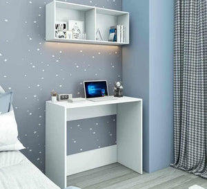 - اظهر اناقه غرفة اولادك بهذا المكتب انيق التصميم للاستذكار والمزود بارفف مكتبة للحائط لزيادة مساحة التخزين للكتب - المكتب بتصميم عصرى انيق وبسيط لاجواء مفعمه بالنشاط - المكتب بابعاد 80سم طول * 40سم عمق *77 سم ارتفاع والارفف 60 سم طول و34 سم عمق - مصنوعه من خشب الMDF ذو المتانه العالية