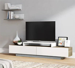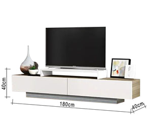 - ترابيزه تلفزيون مستطيلة الشكل بابعاد 40 سم ارتفاع و180 سم عرض و40 سم سمك.