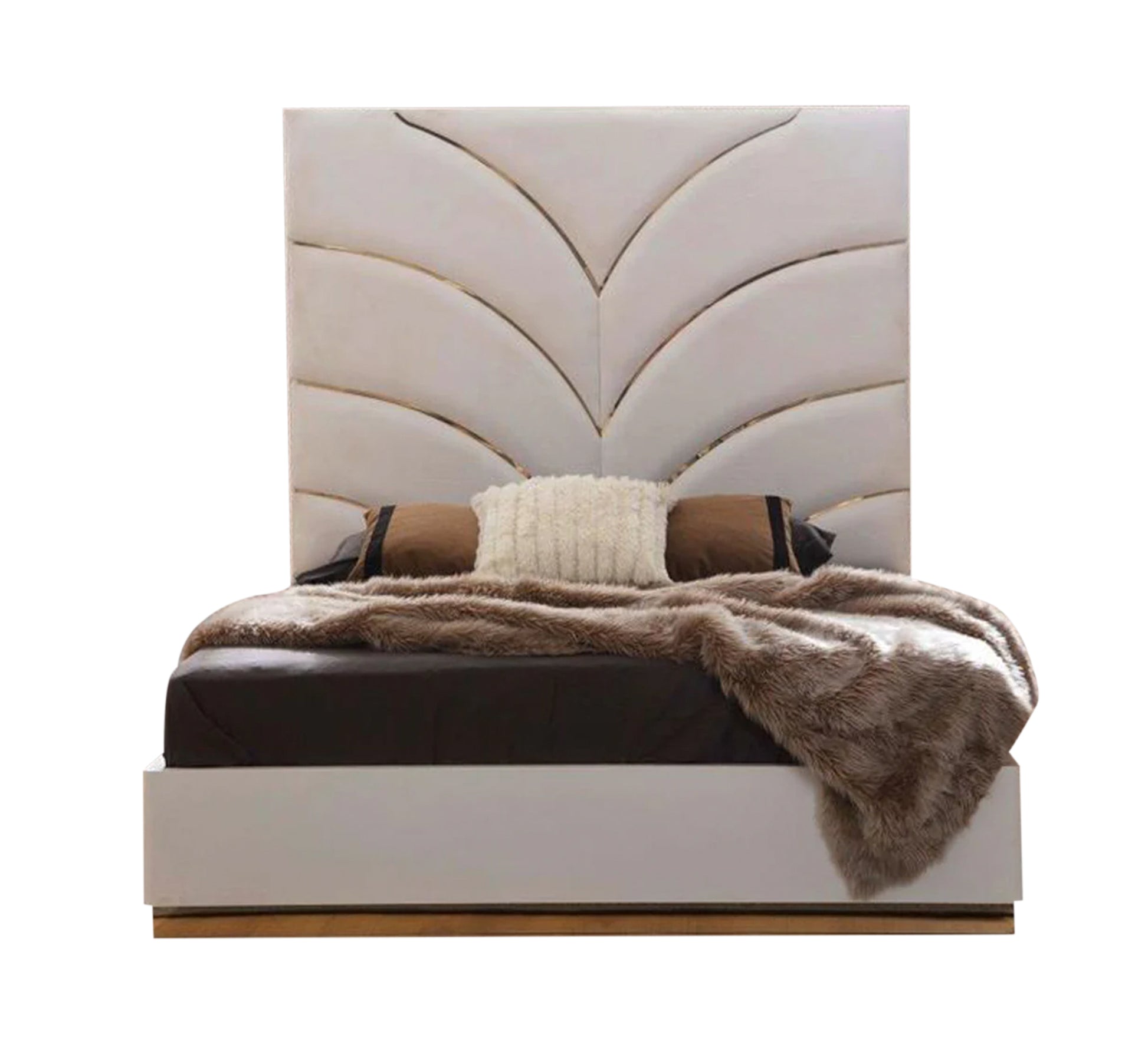 سرير أبيض بتصميم فاخر بخطوط ذهبية