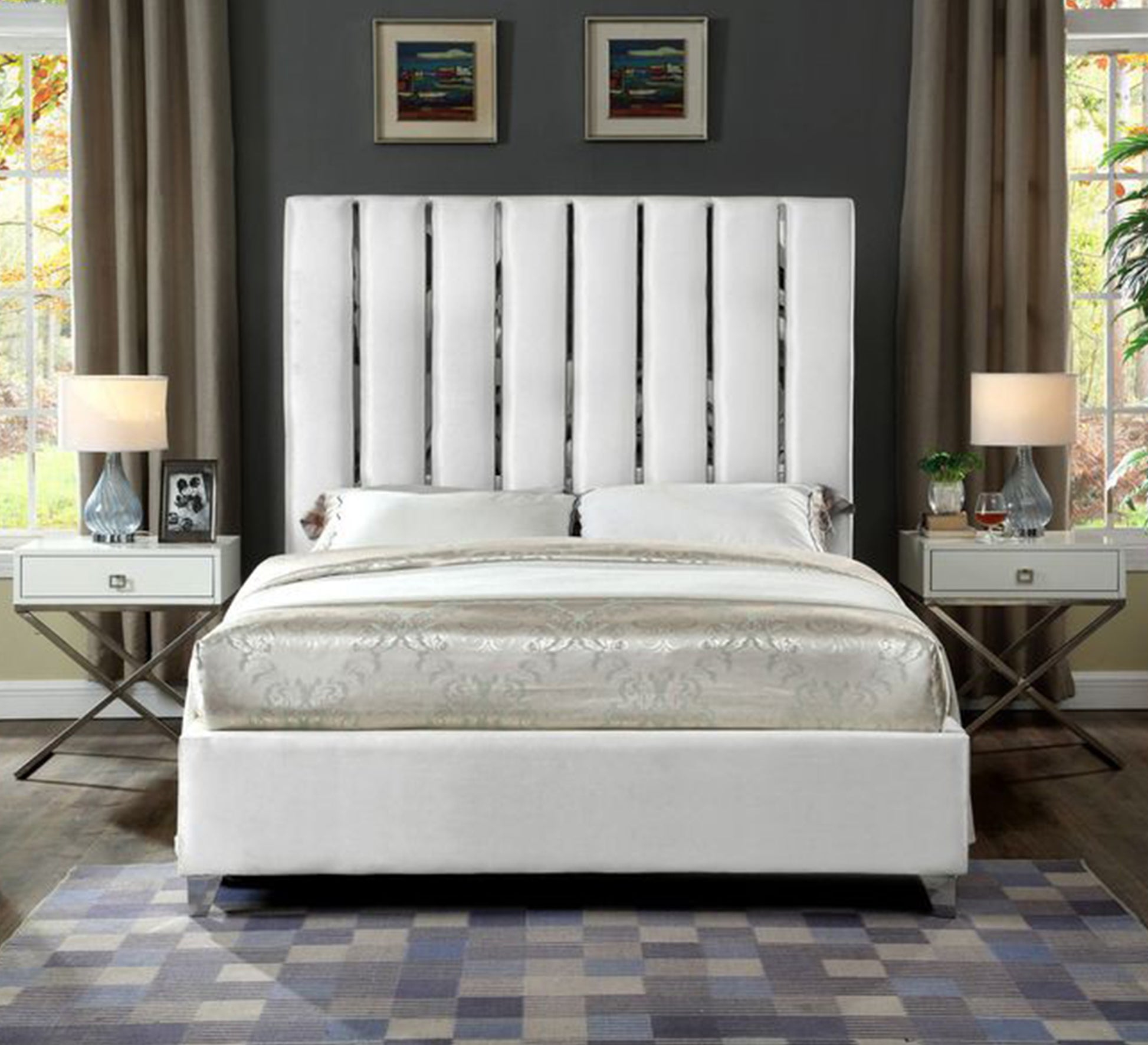 سرير أوف وايت برأس عمودي وفخامة عصرية